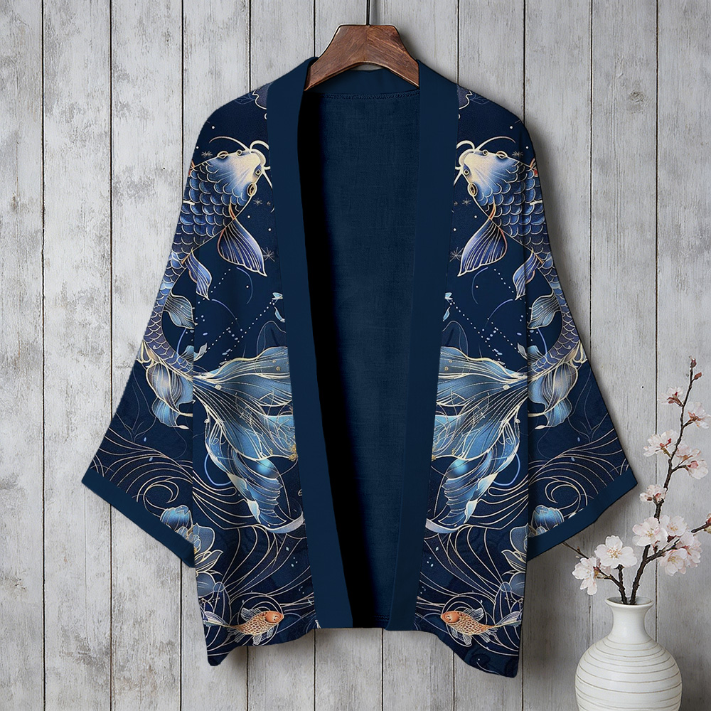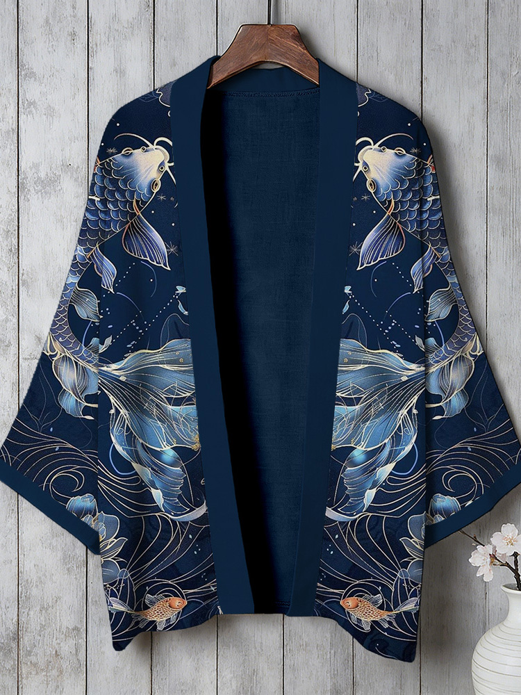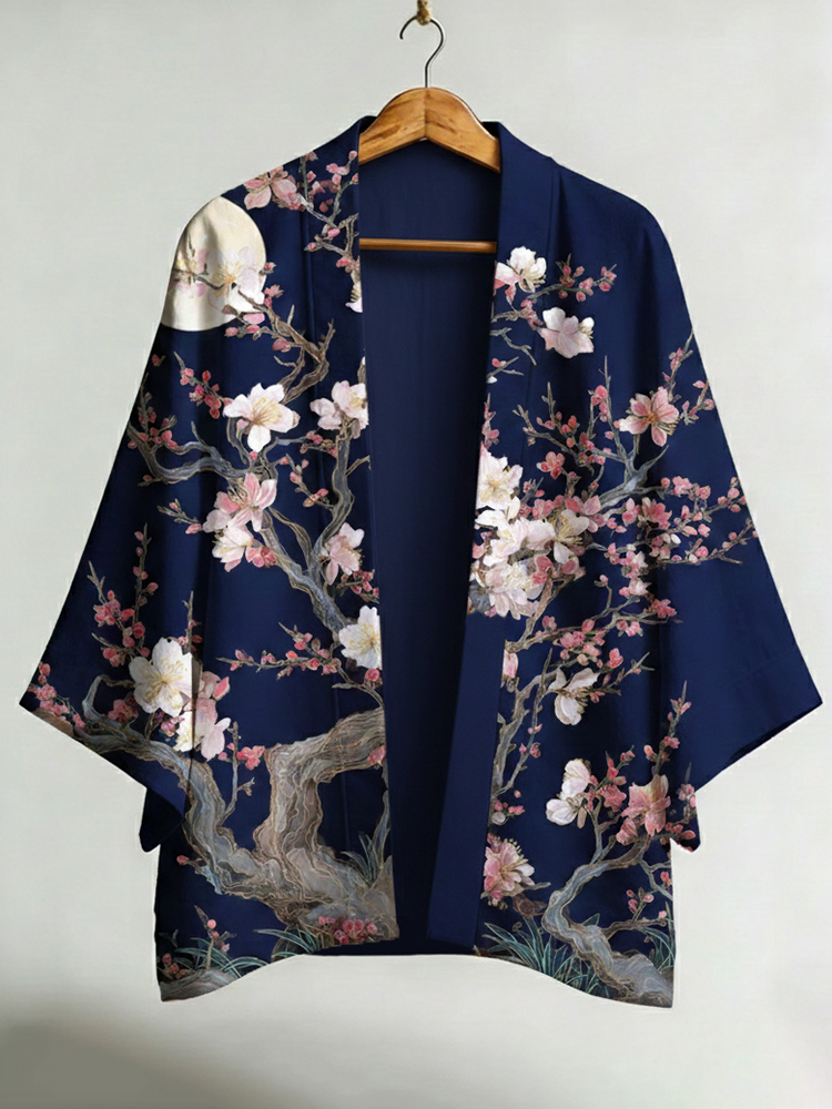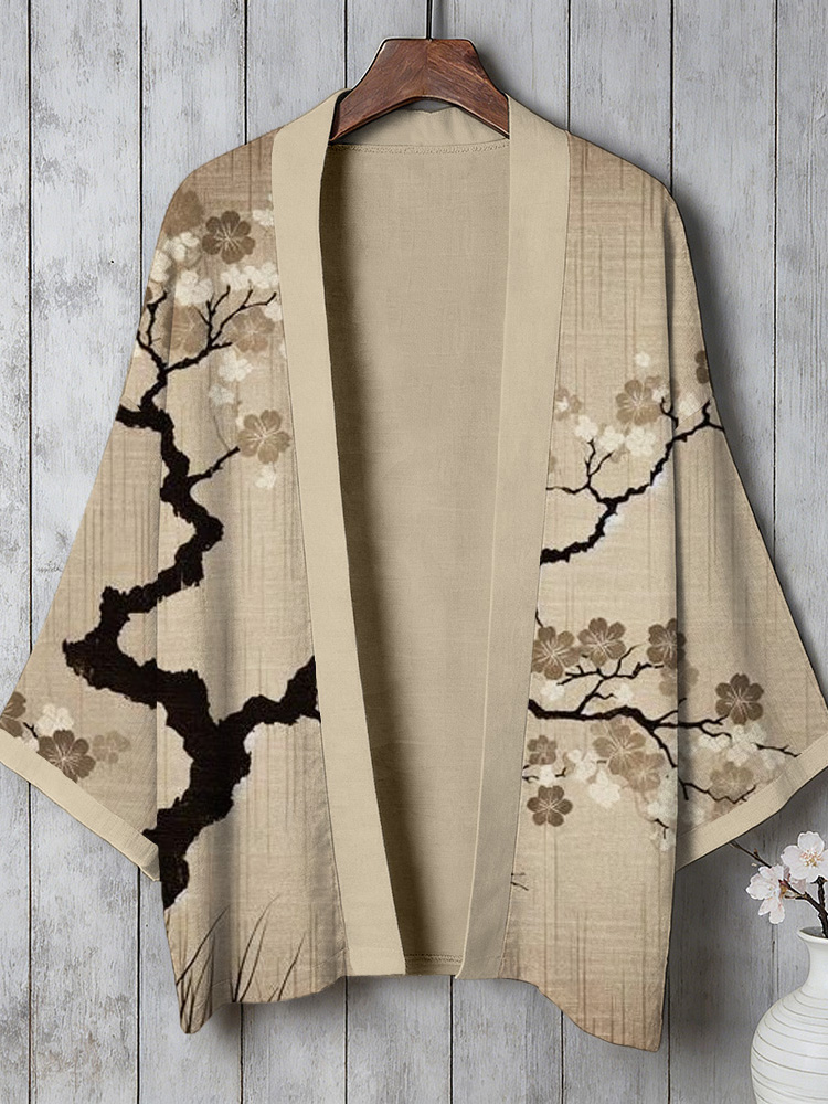 Women's Japanese Floral Print Linen Kimono Cardigan