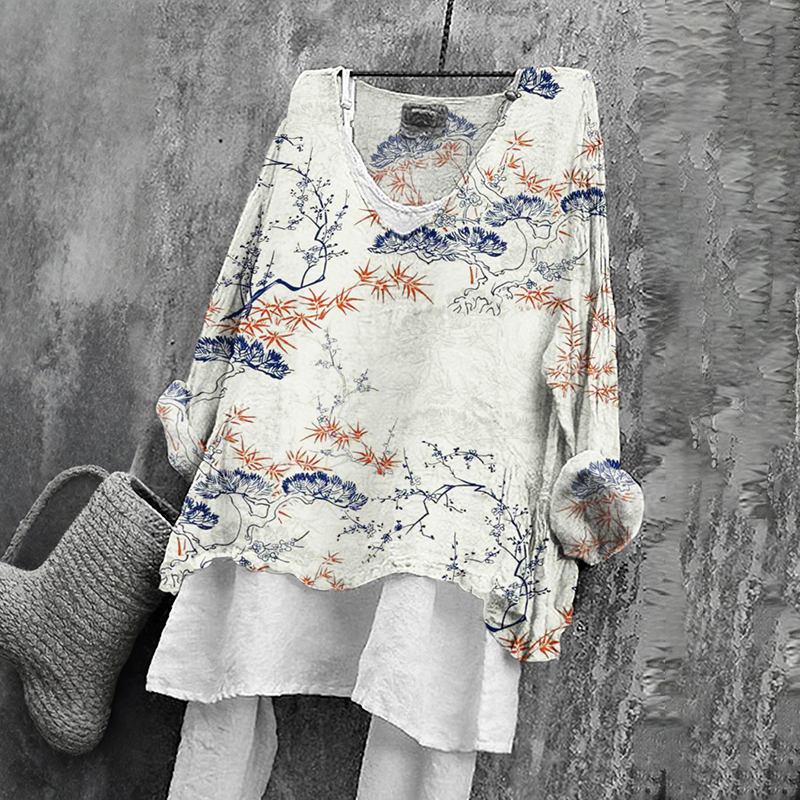Japanese Art Painting Pattern Cozy Flowy Tunic