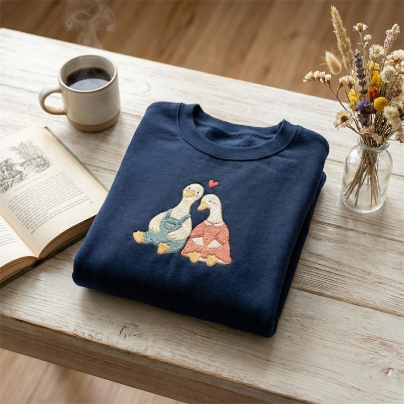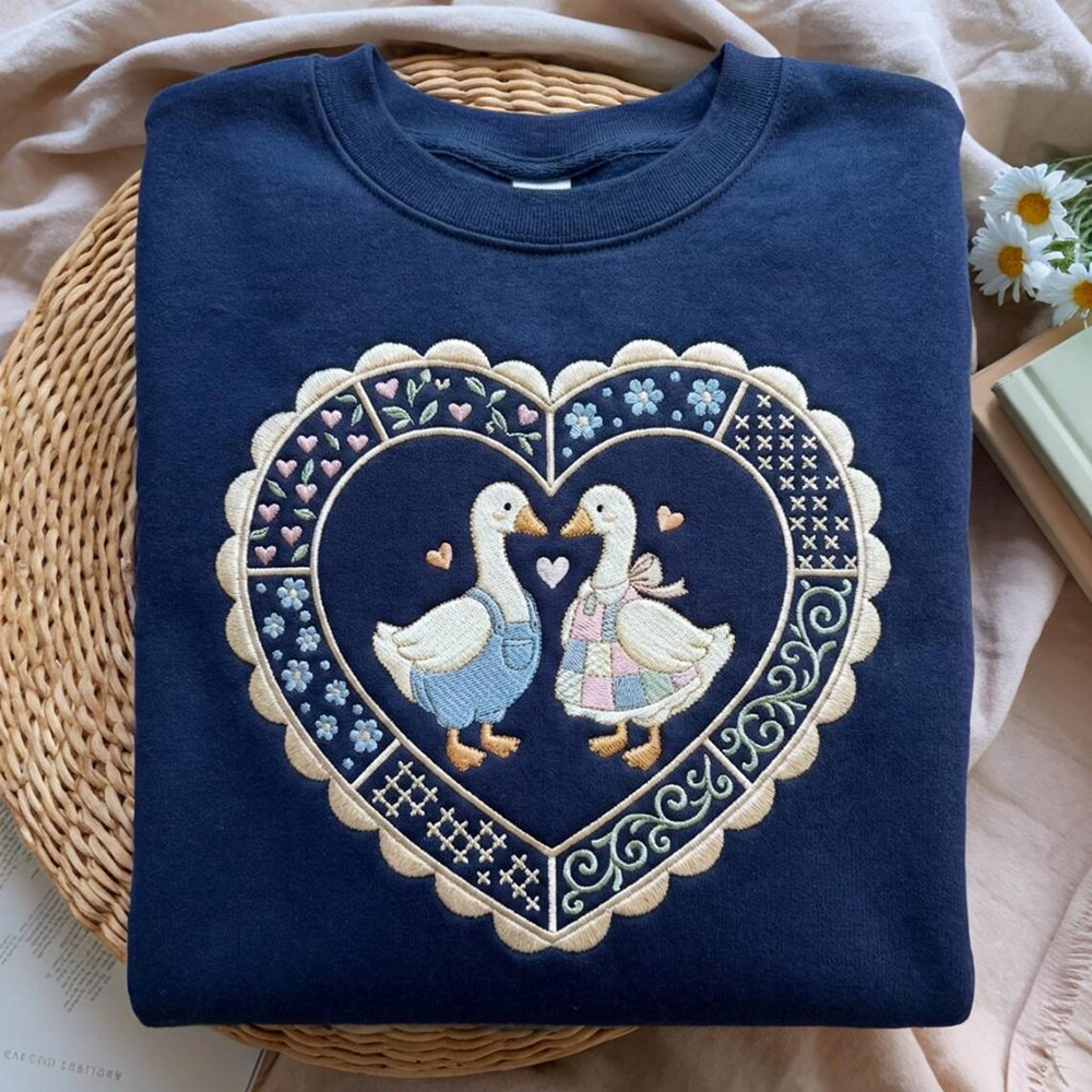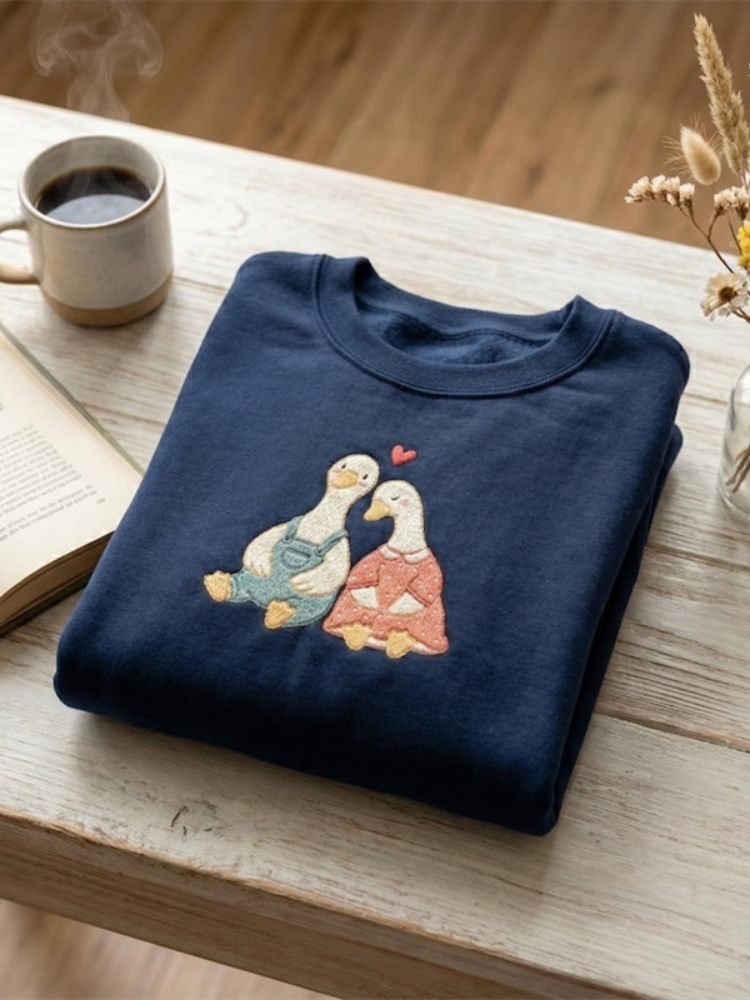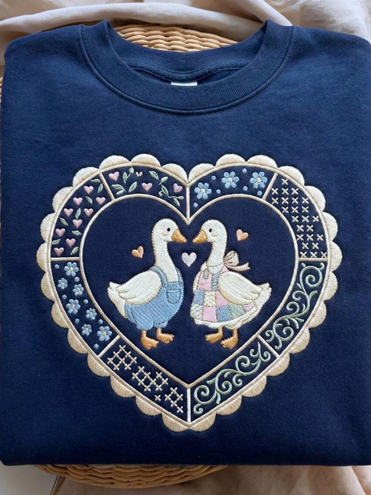 Embroidered Vintage Couples Goose Sweatshirt
