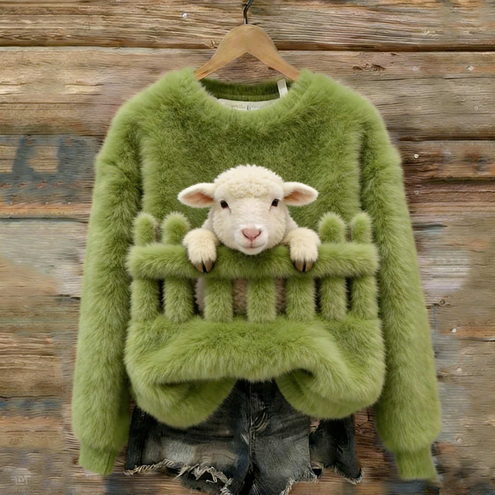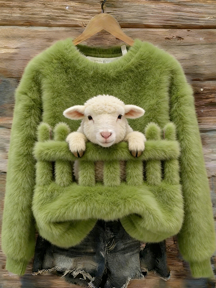 Animal Pattern Crew Neck Cozy Plush Sweatshirt