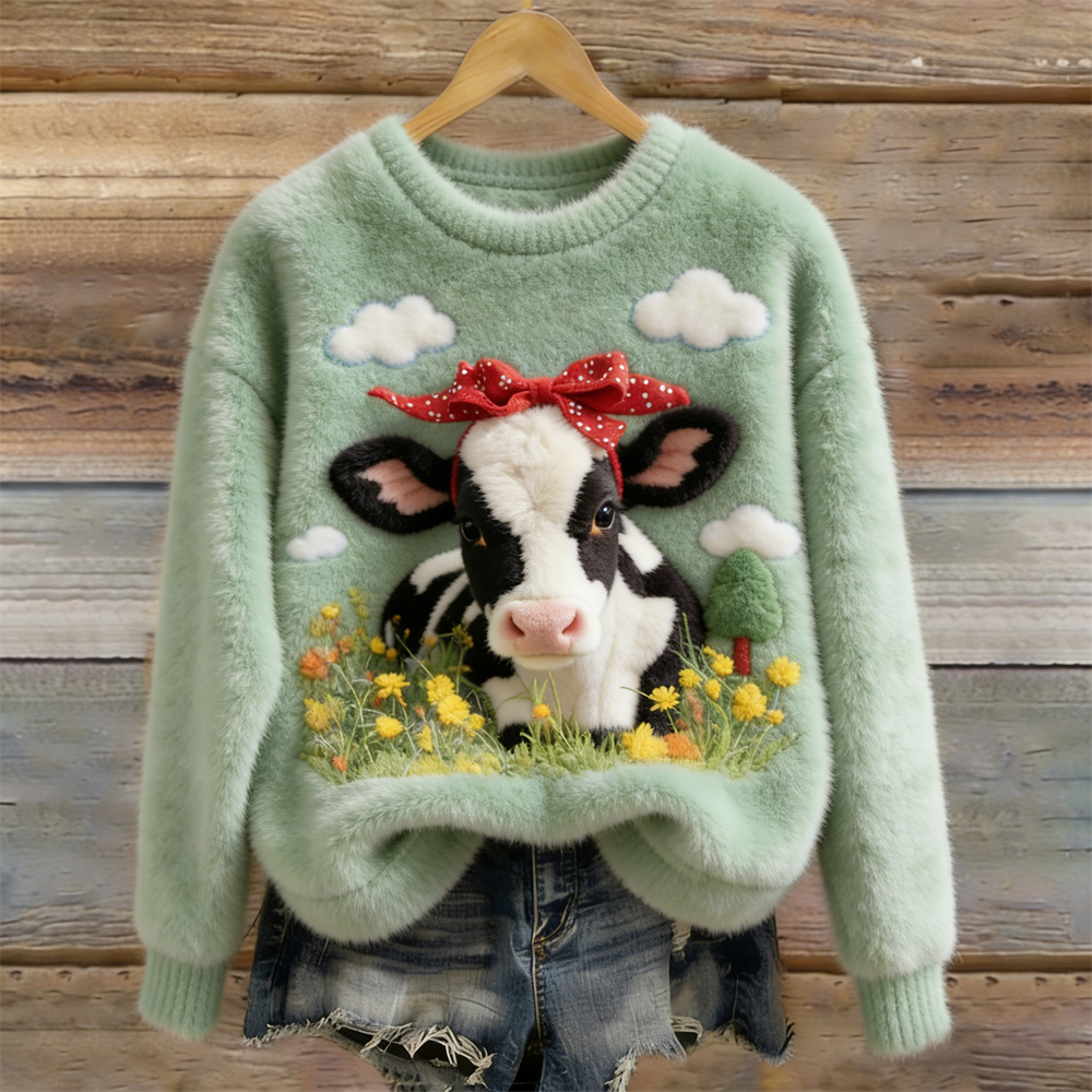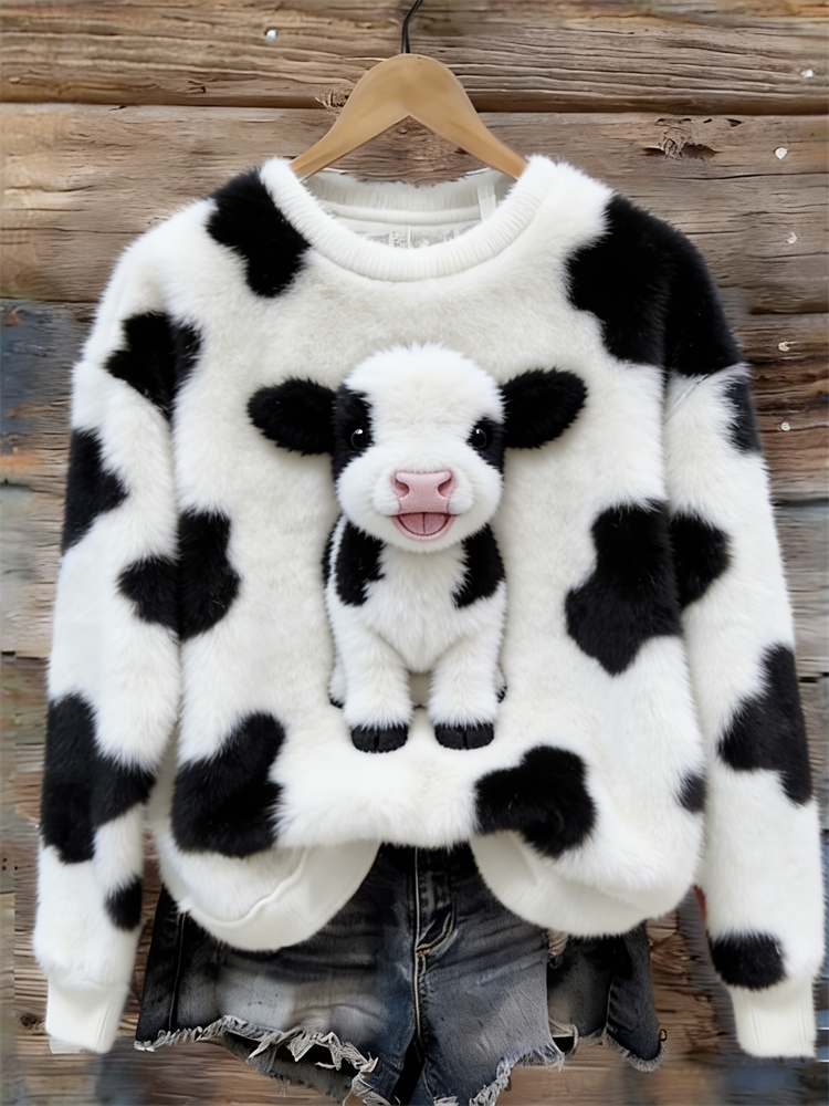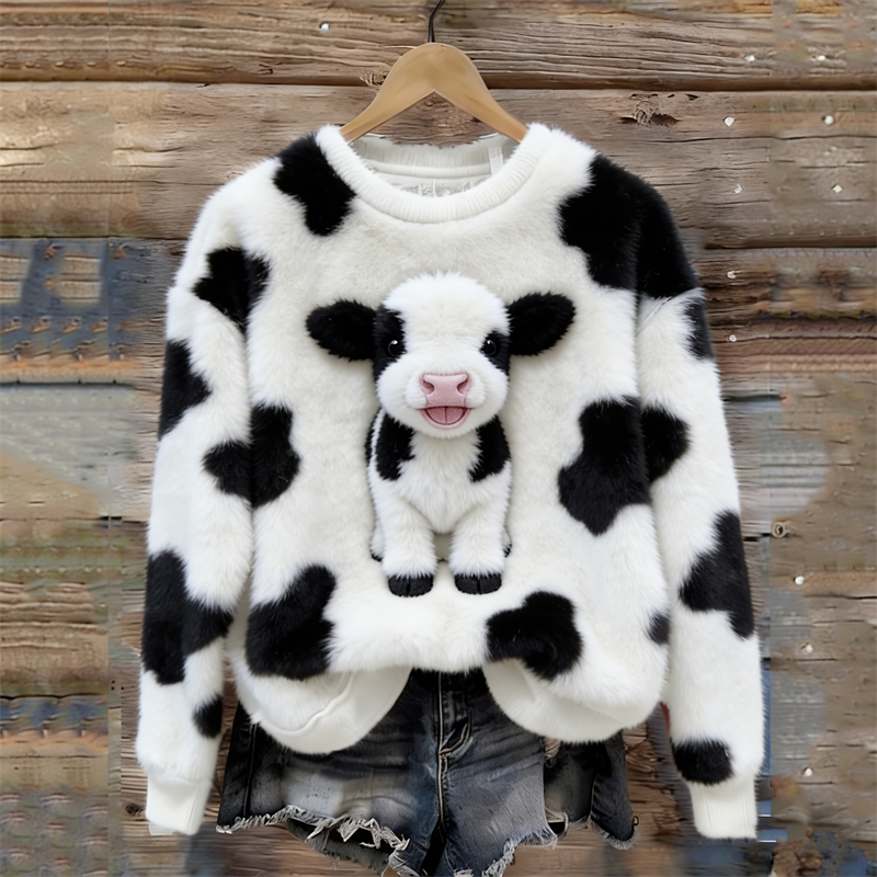 Lovely Fuzzy Baby Dairy Cow Cowhide Cozy Plush Sweatshirt