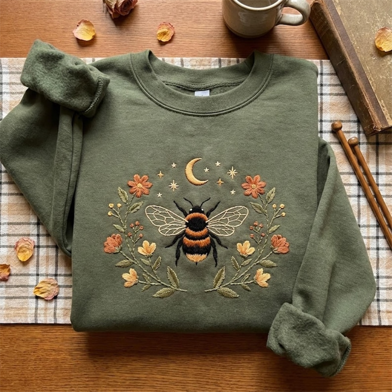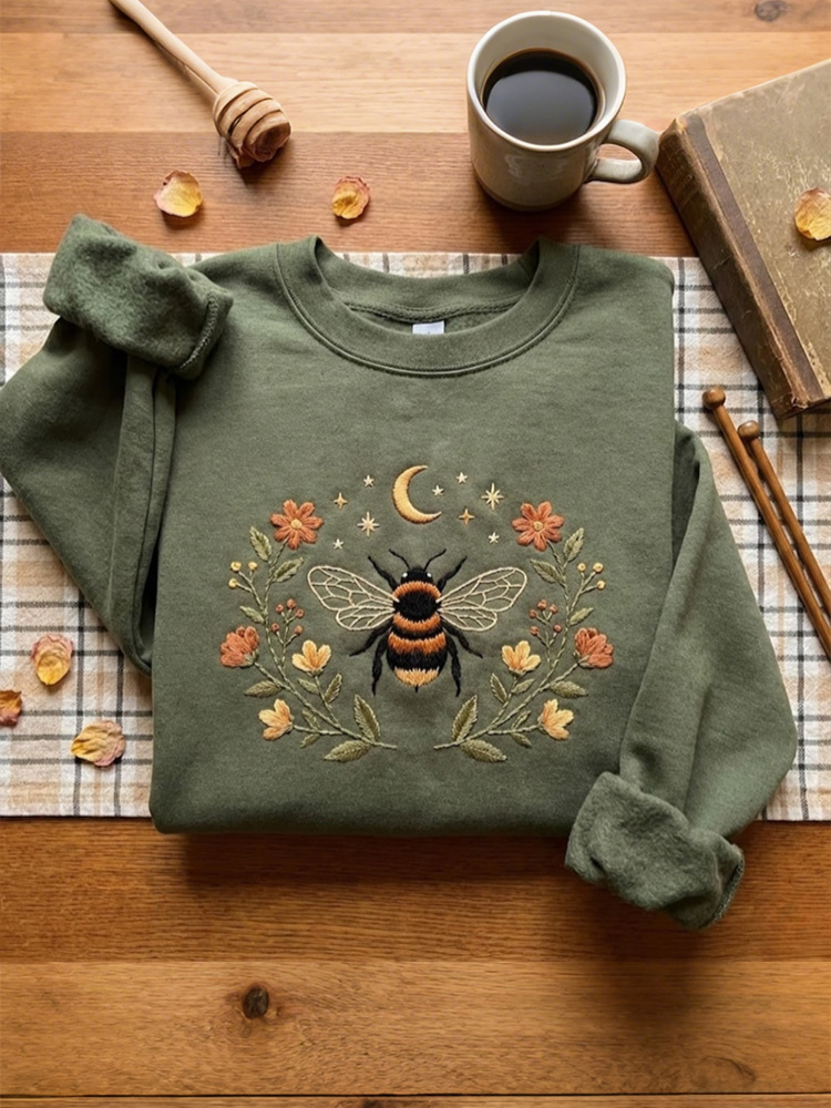 Cottagecore Bee Embroidered Sweatshirt