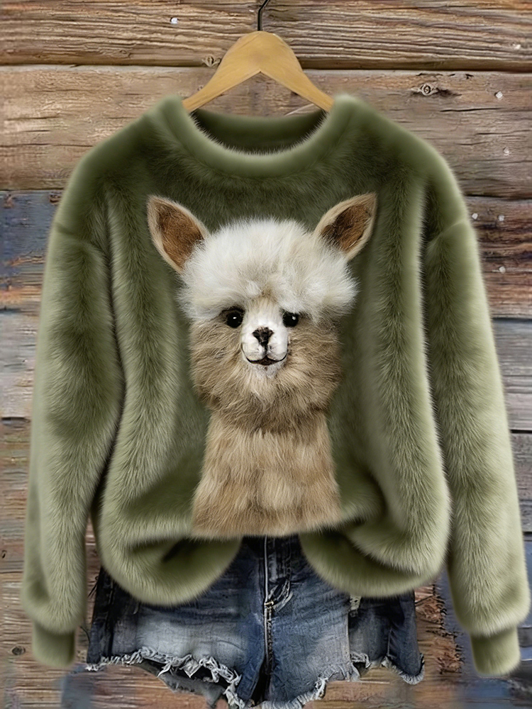 Funny Fuzzy Alpaca Felt Art Cozy Plush Sweatshirt