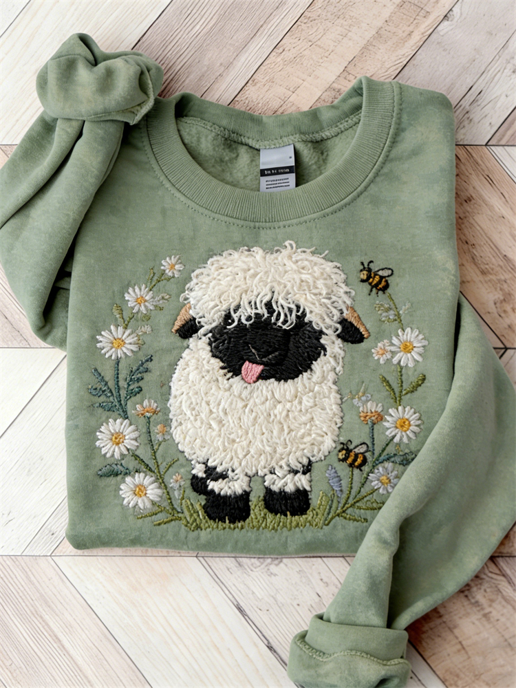Lovely Fuzzy Sheep & Bees Daisy Floral Cozy Sweatshirt