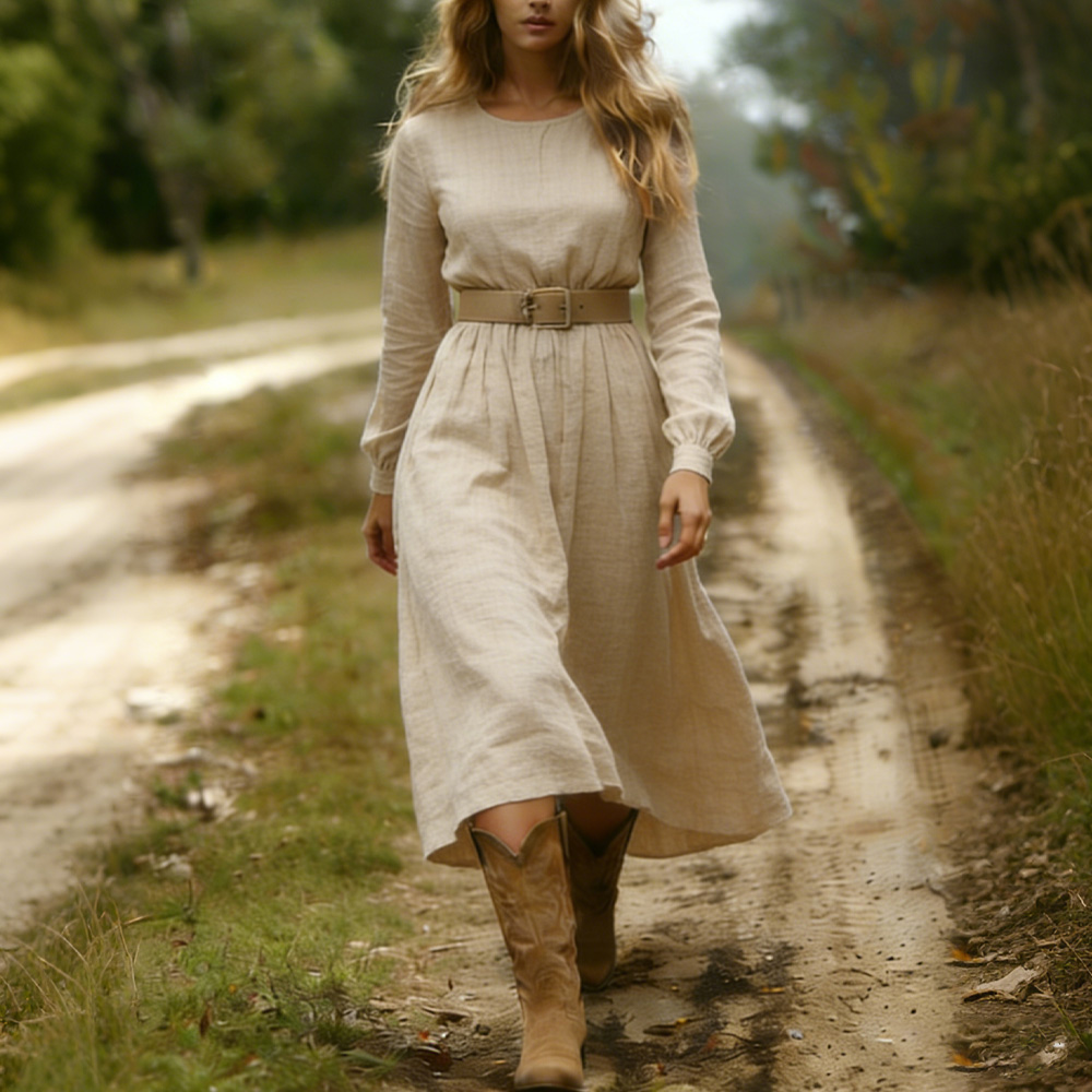 Women's Retro Casual Solid Color Dress