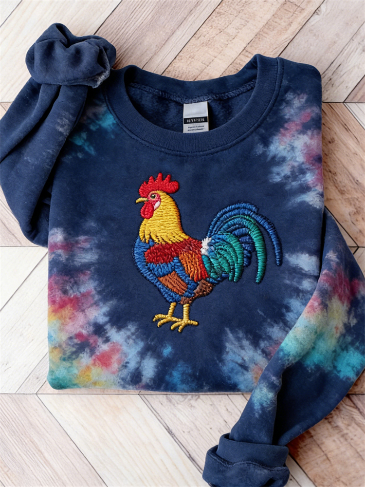 Colorful Rooster Tie Dye Cozy Sweatshirt
