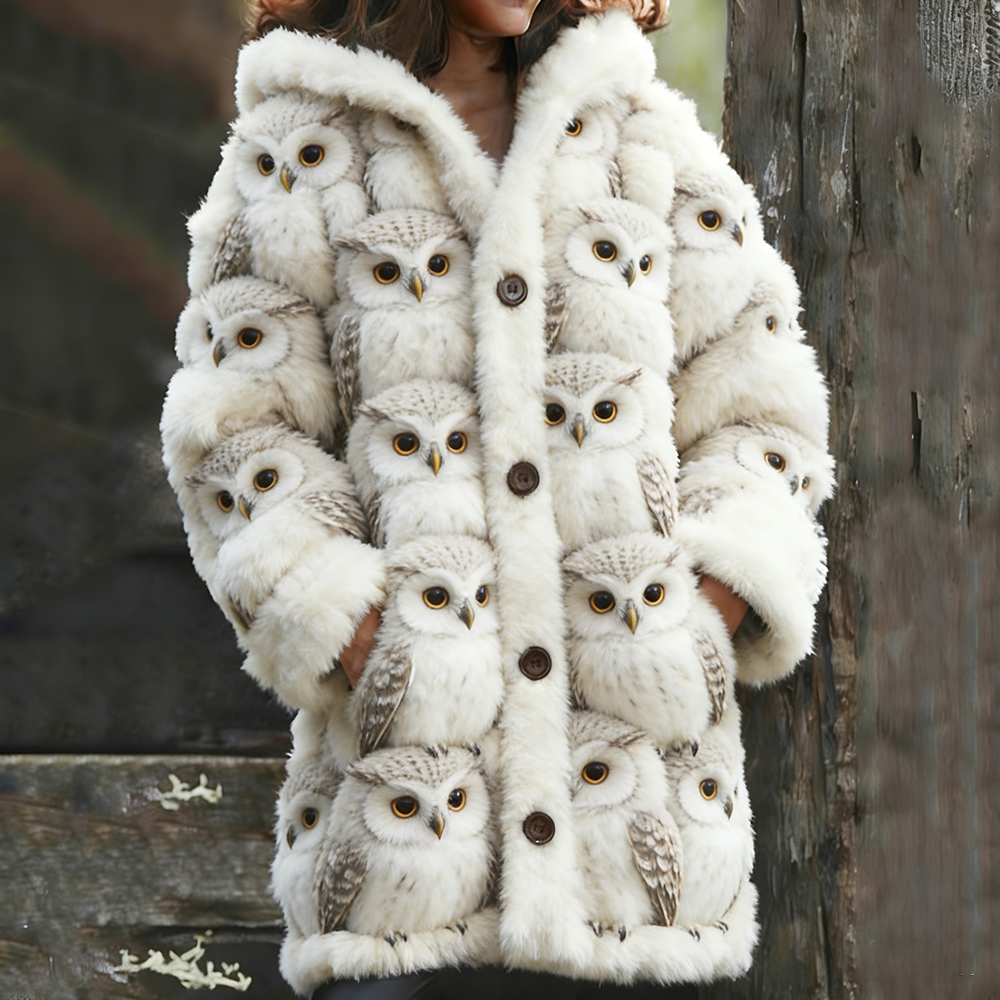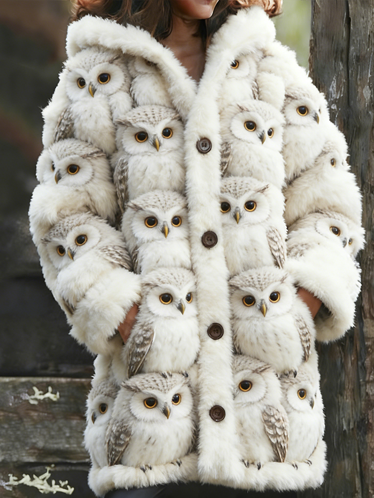 Resting Owl Plush Warm Hooded Cardigan