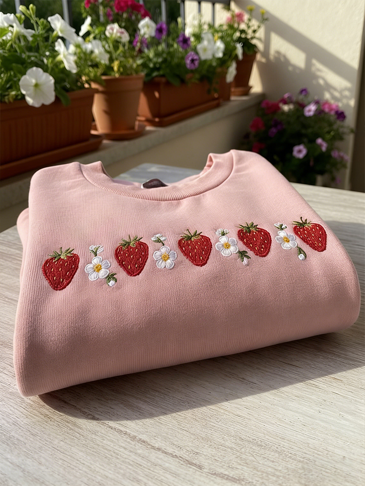 Embroidered Strawberry Daisy Sweatshirt