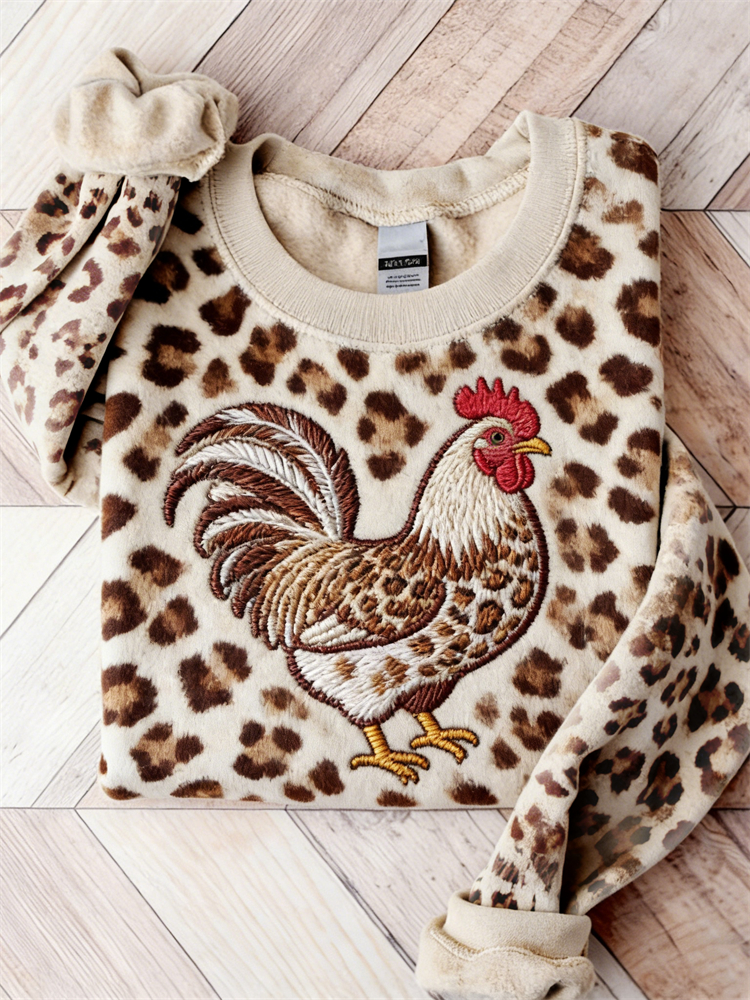 Funny Leopard Chicken Leopard Pattern Cozy Sweatshirt