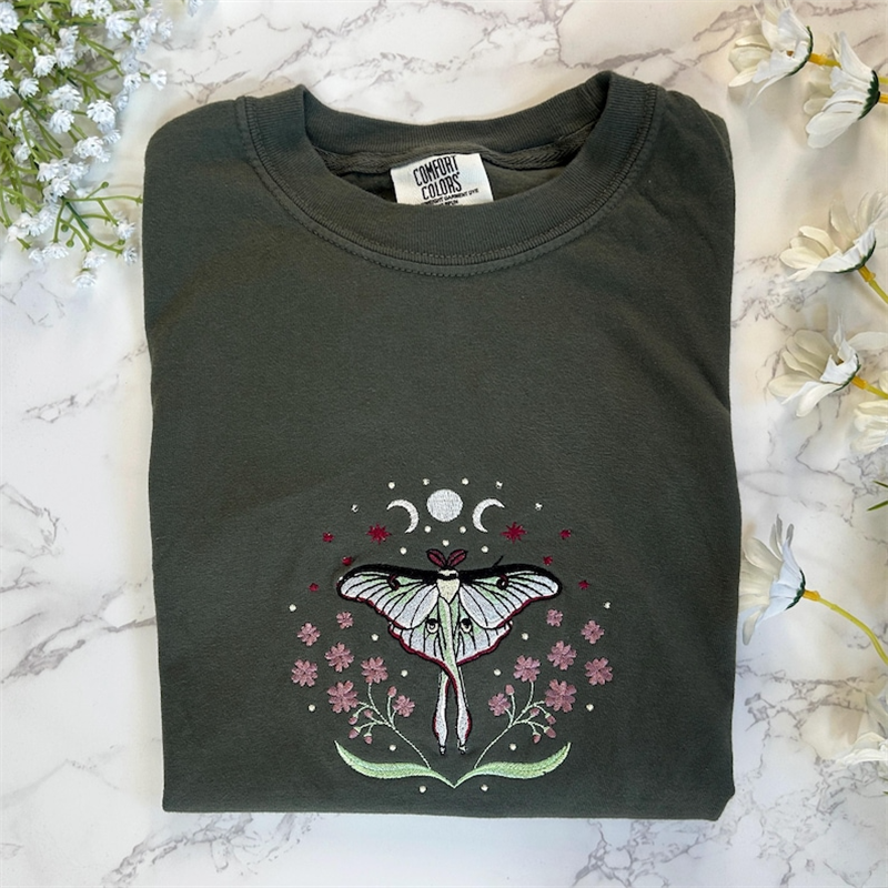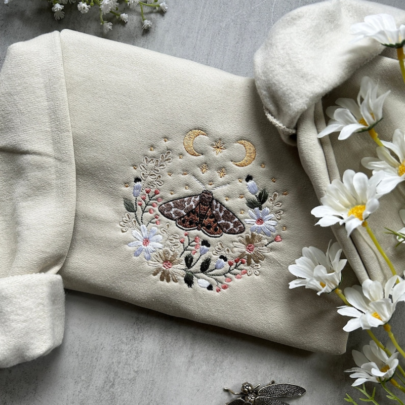 Cottagecore Luna Moth Embroidered Sweatshirt