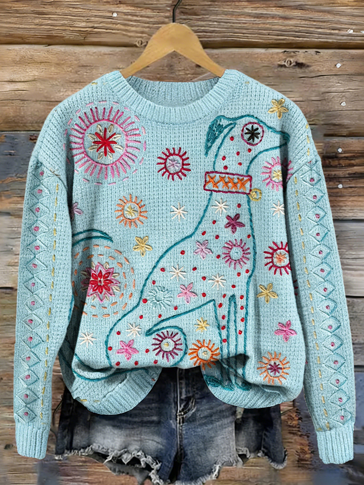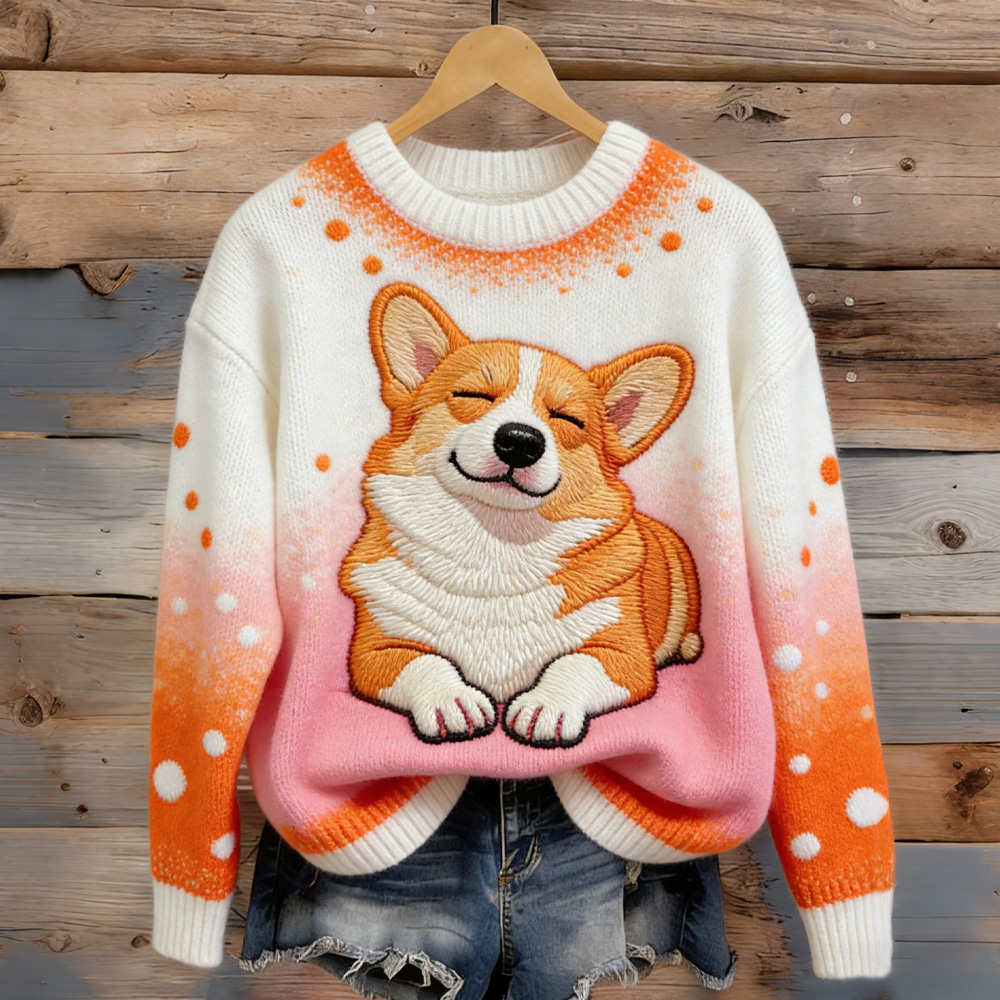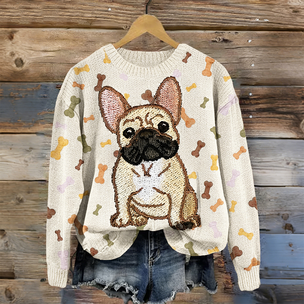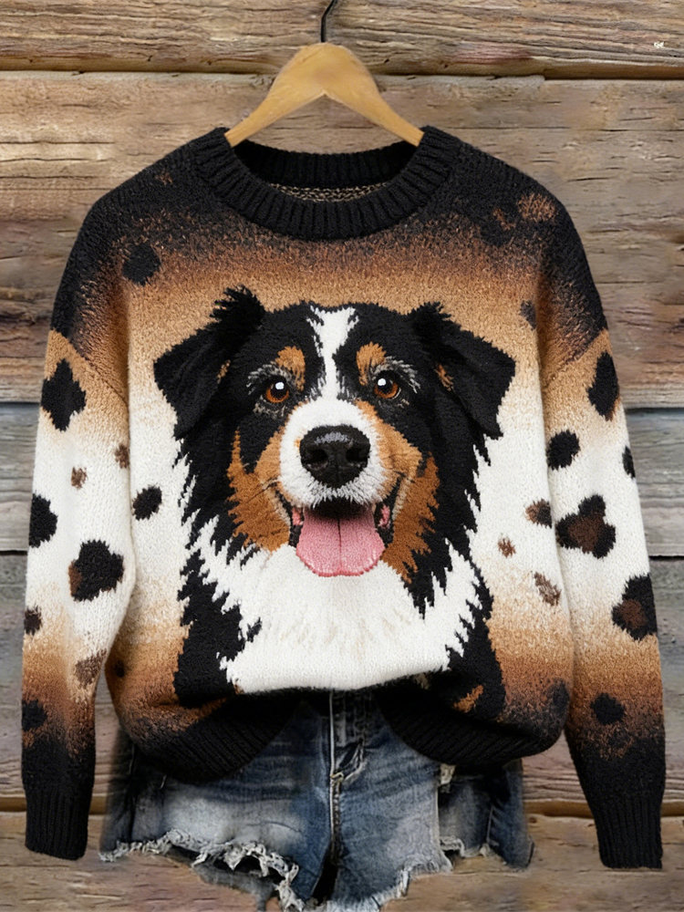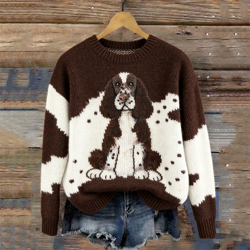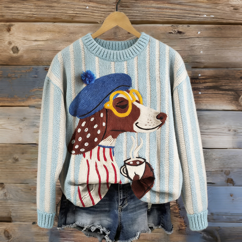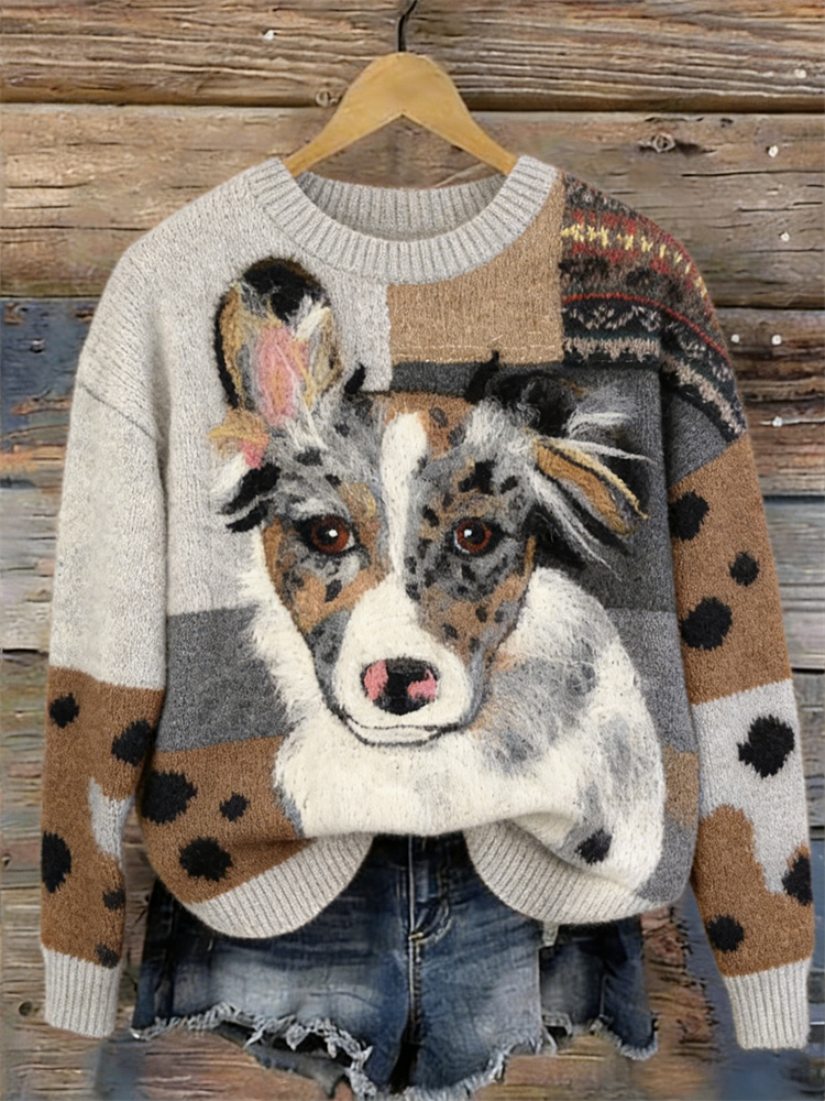 Lovely Dog & Pattern Inspired Cozy Knit Sweater