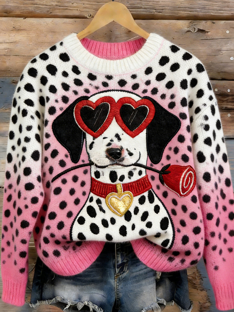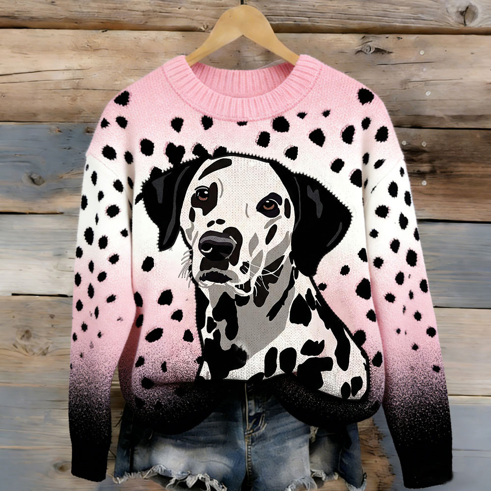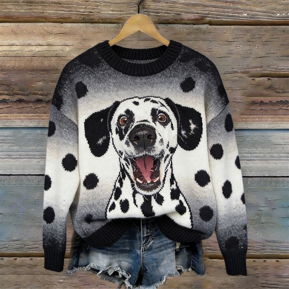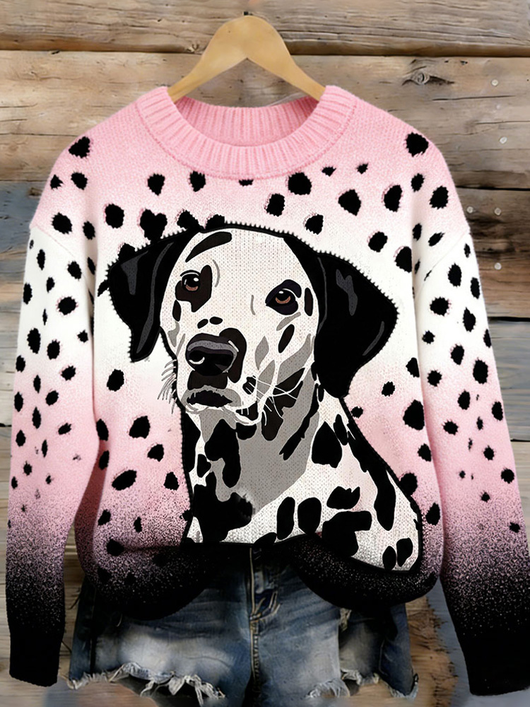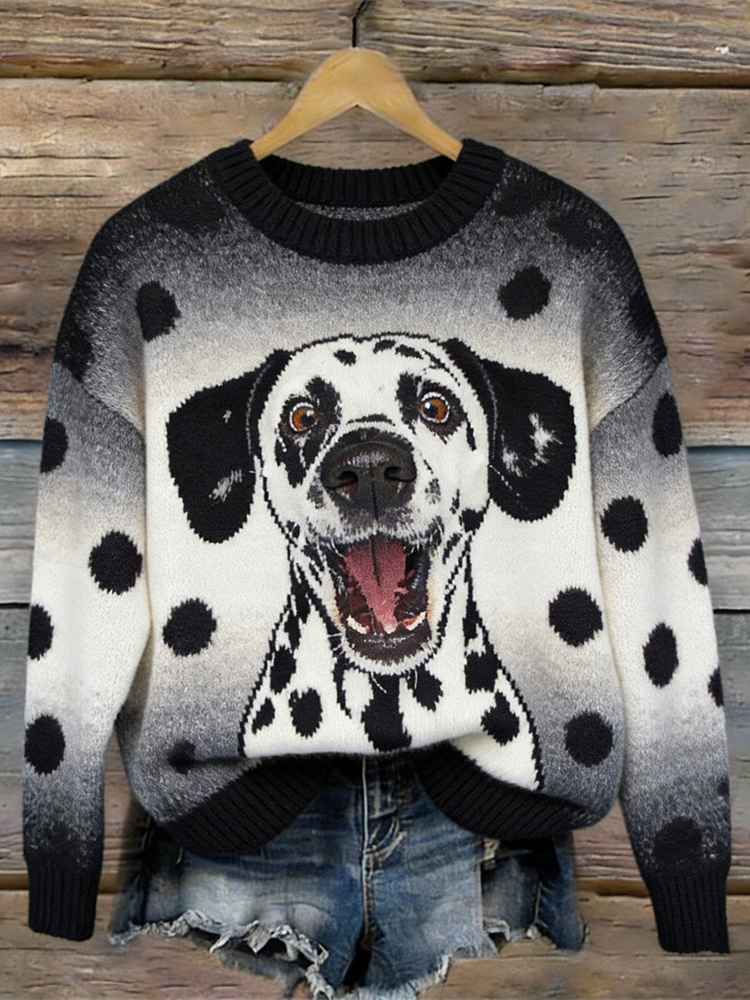 Women's Casual Funny Puppy Dalmatian Print Sweater
