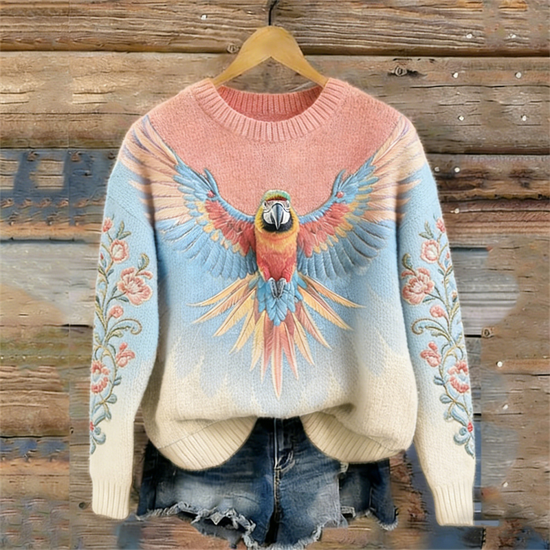 Pink Macaw Parrot Floral Gradient Cozy Knit Sweater