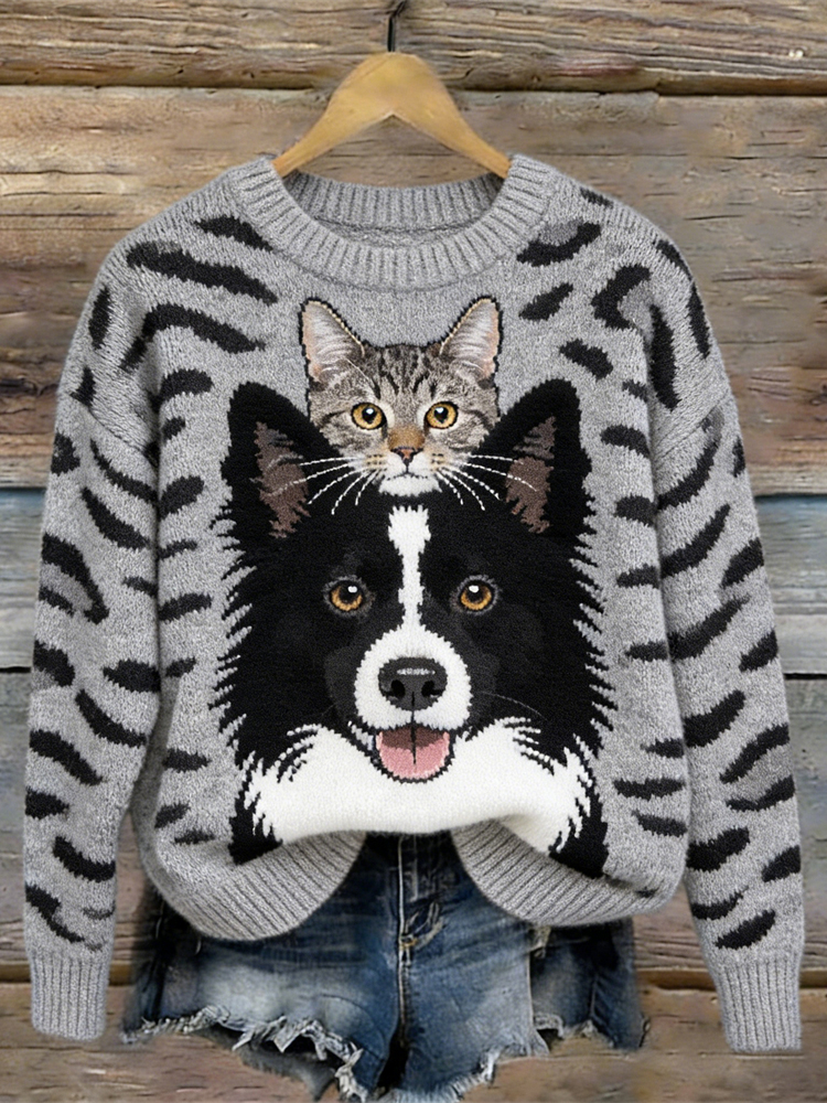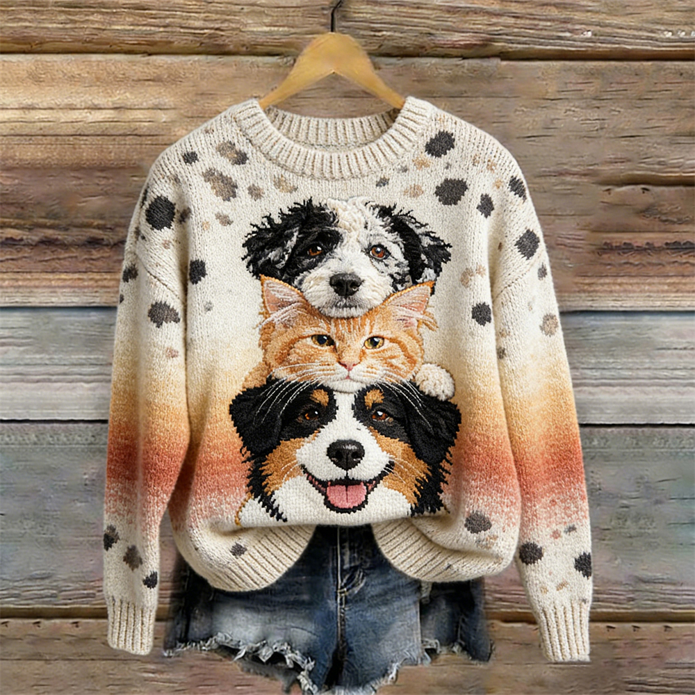 Pet Dog & Cat Animal Art Women's Knitted Sweater