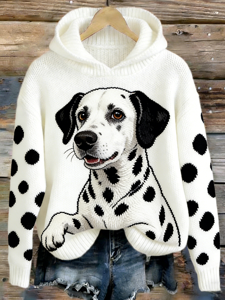 Spot Dog Pattern Printed Women's Hooded Sweater