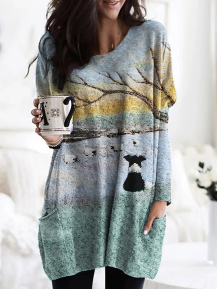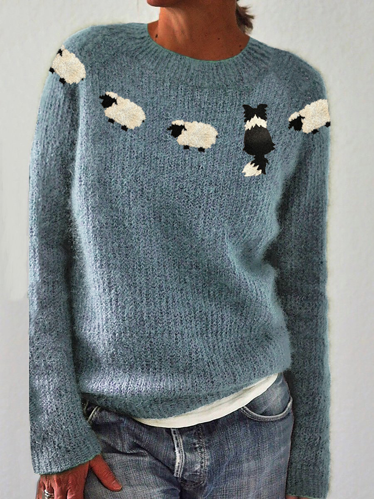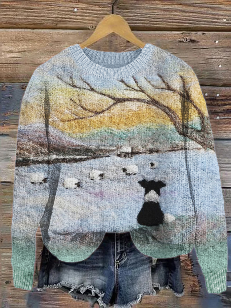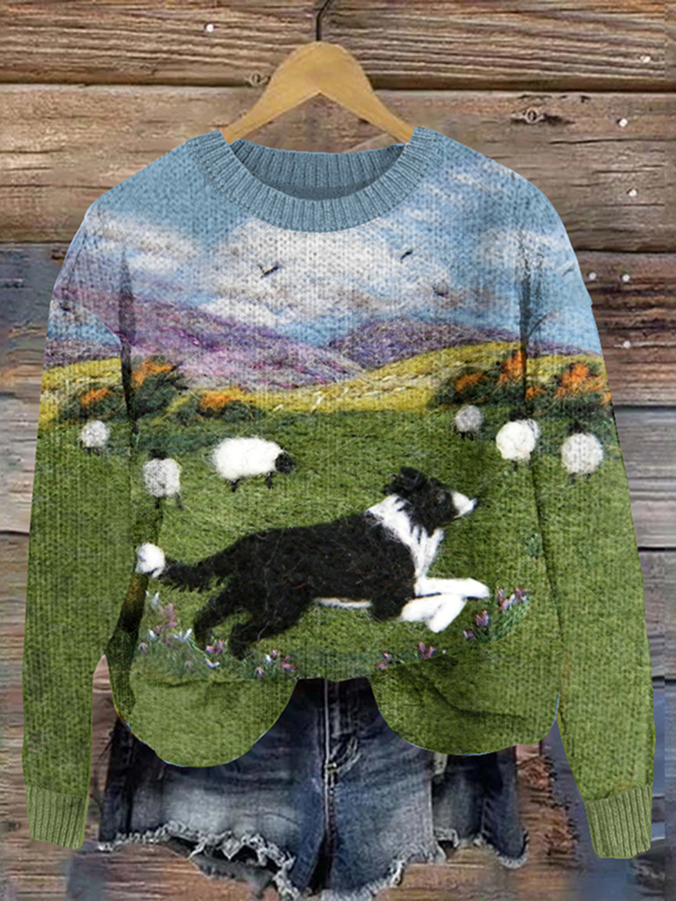 • Border Collie & Sheep Felt Art Cozy Sweater