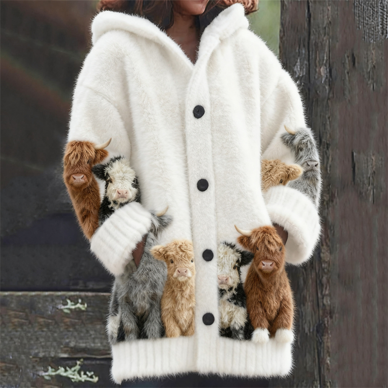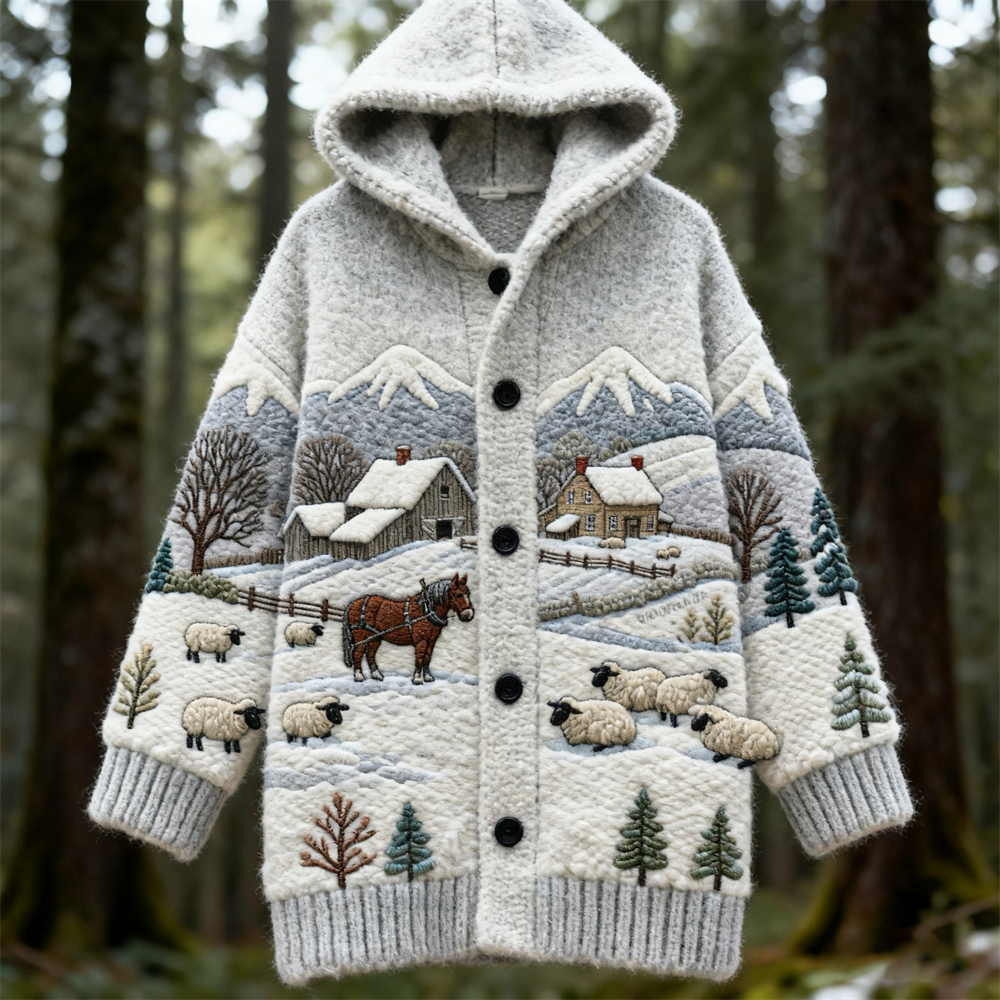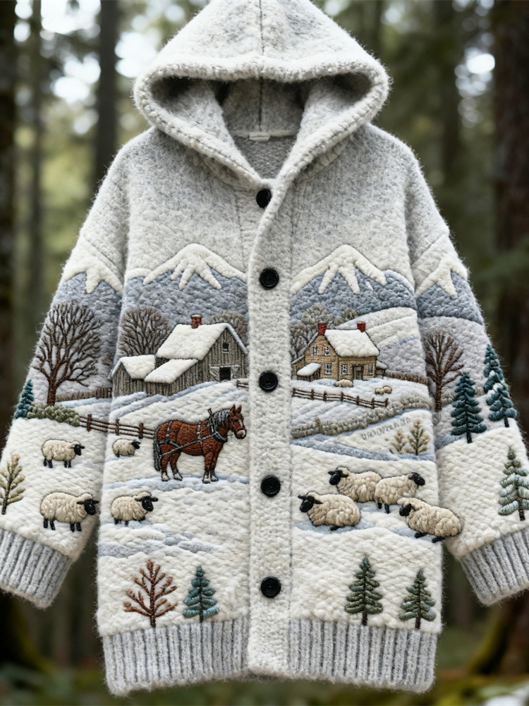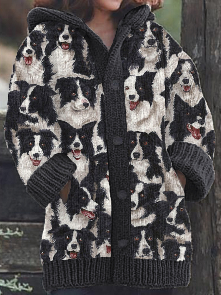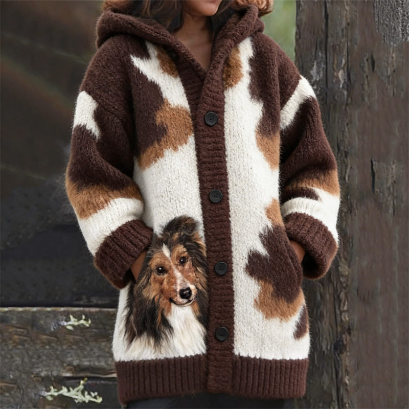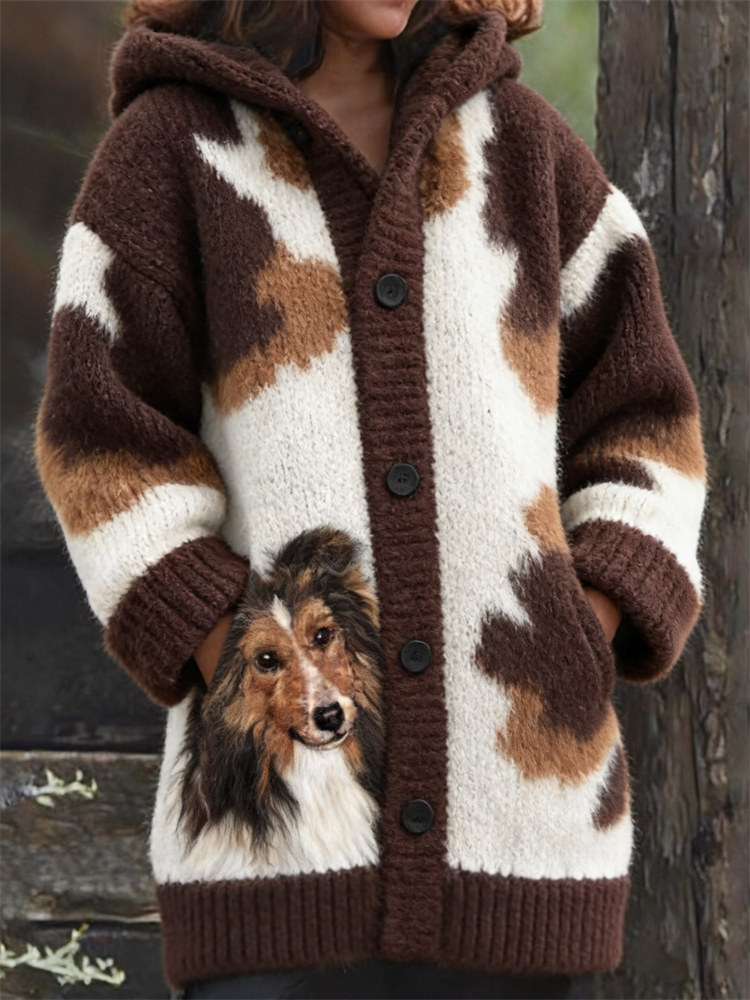 • Sheepdog & Pattern Cozy Hooded Cardigan