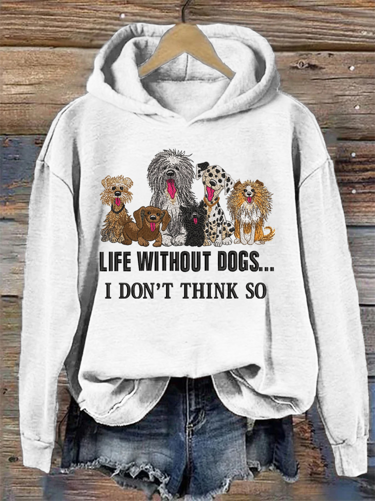 • Life Without Dogs Embroidery Pattern Hoodie