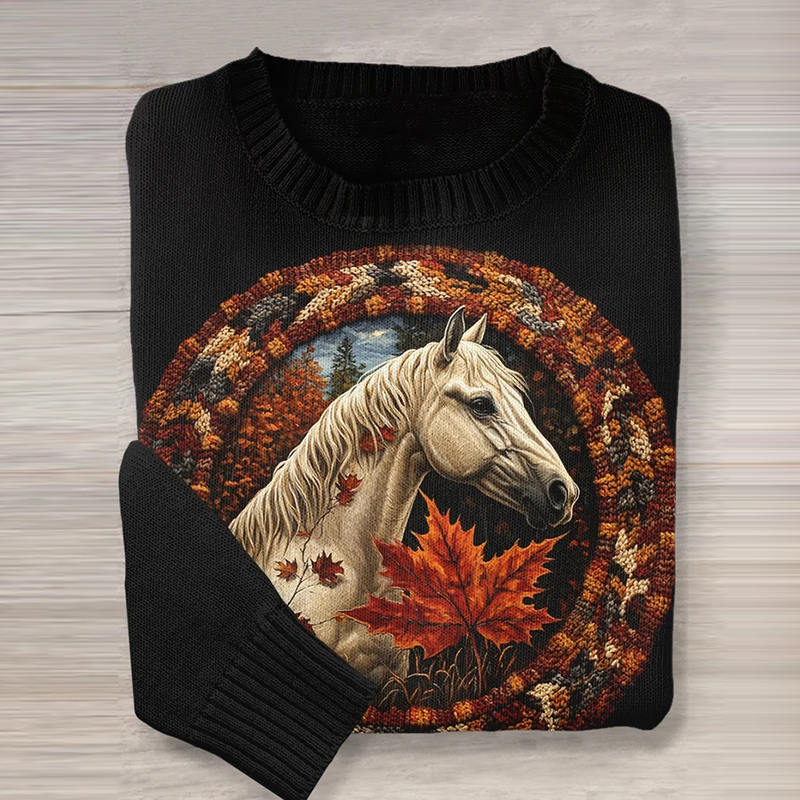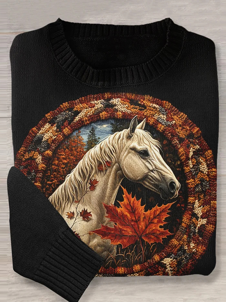 • Vintage Horse Art Pattern Knit Sweater