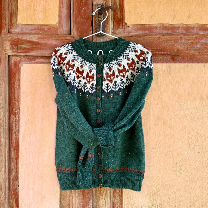 Icelandic Fox Ethnic Print Long Sleeve Knitted Cardigan