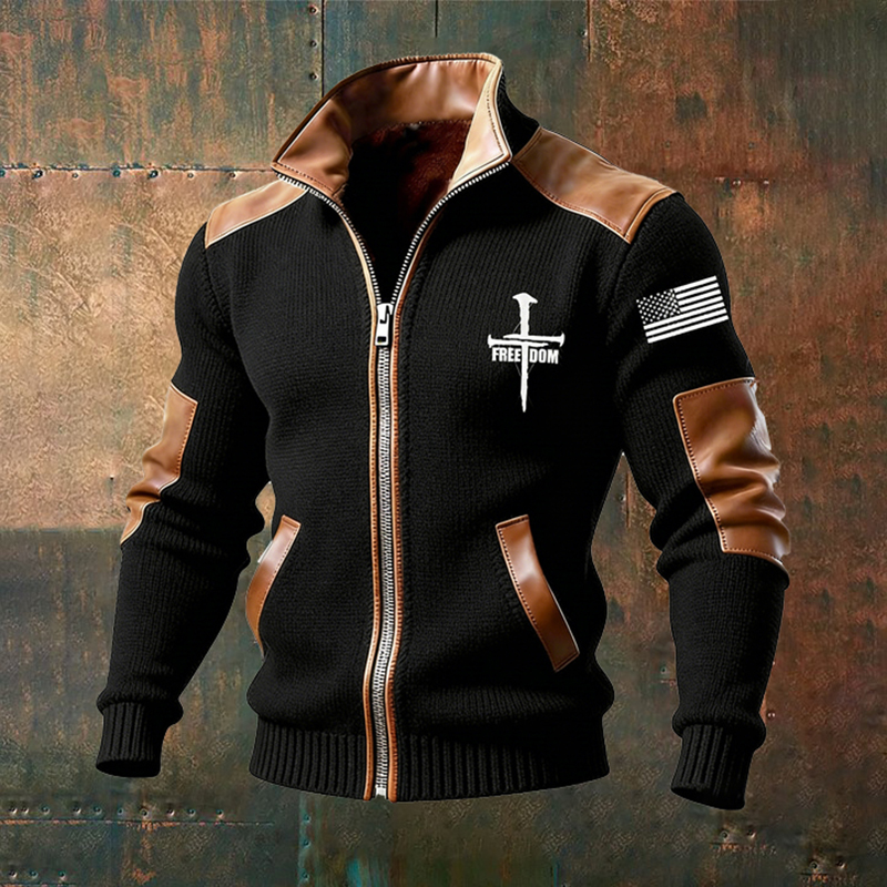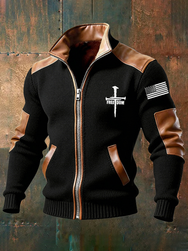 Men's Retro Cross Flag Knitted Warmth Zipper Sweater