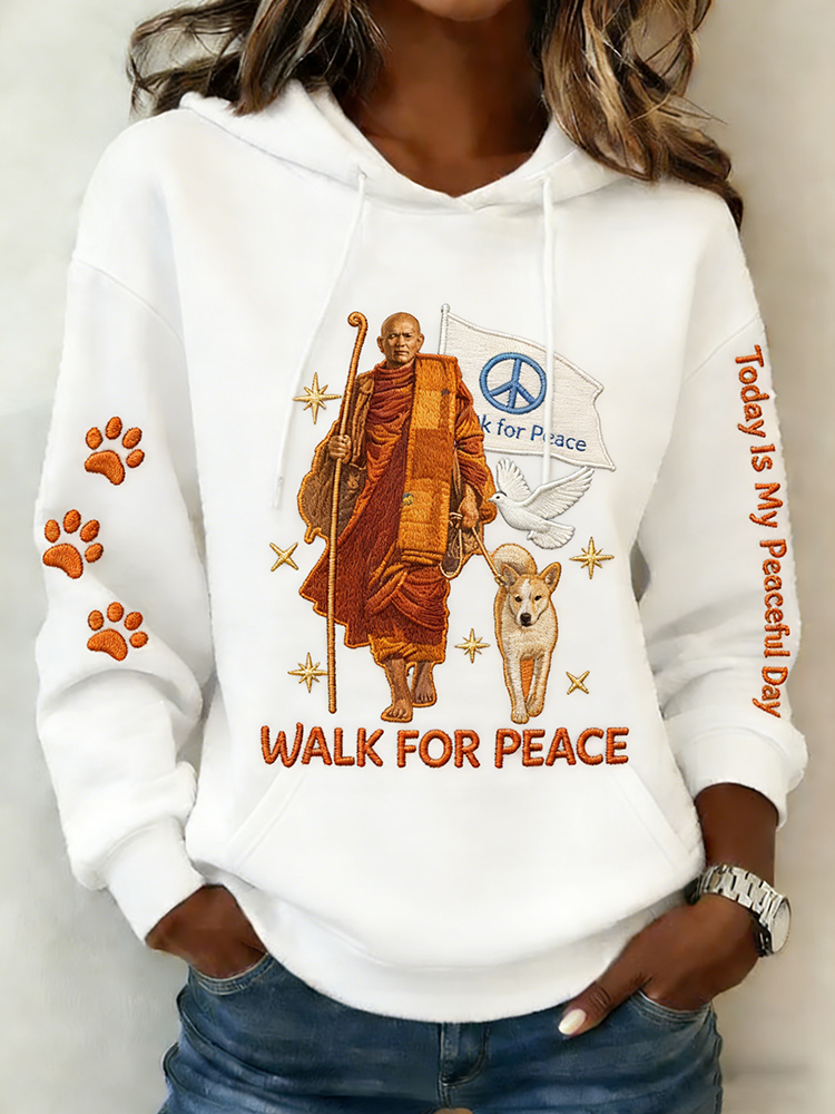 Monks' Peace Walk Today Is My Peaceful Day Print Distressed Hoodie