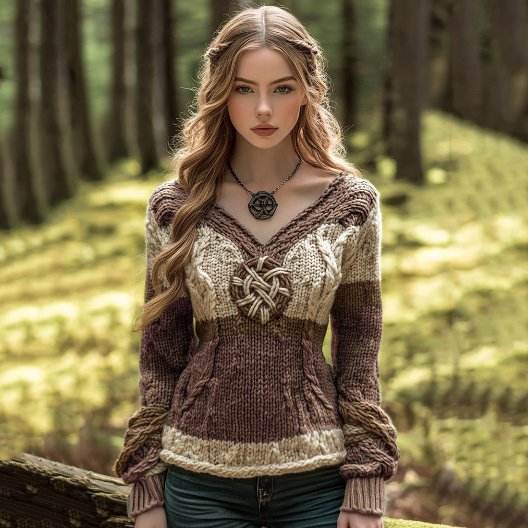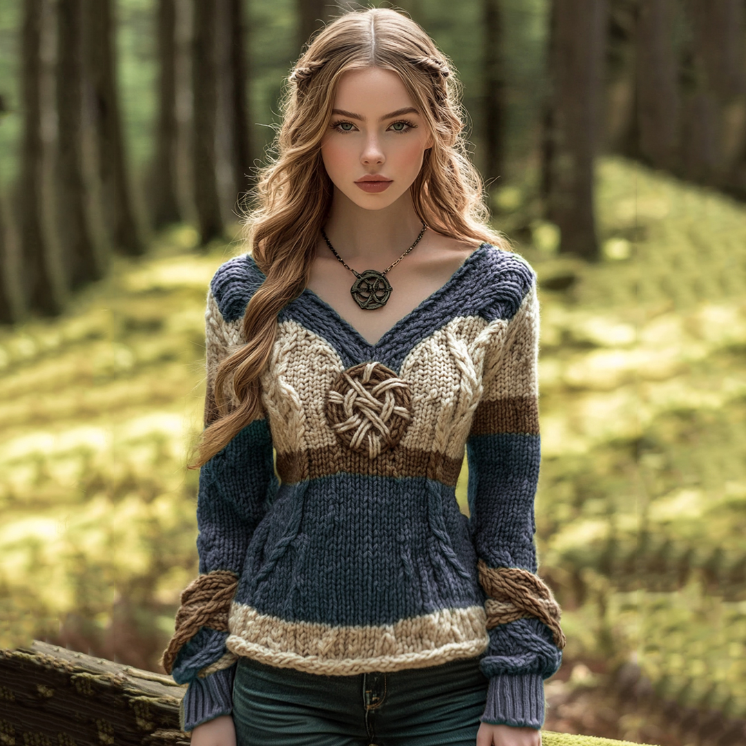 Vintage Contrast Jacquard V-neck Knit Sweater