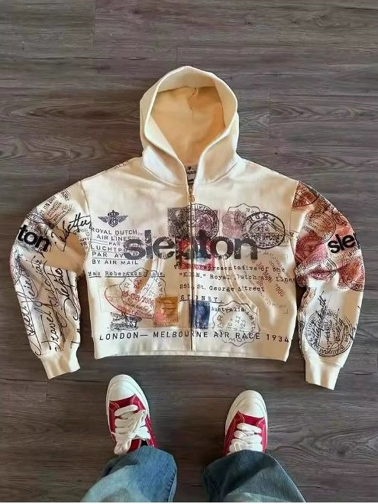 Y2k Street Retro Print Hip Hoo Zip-up Hoodie