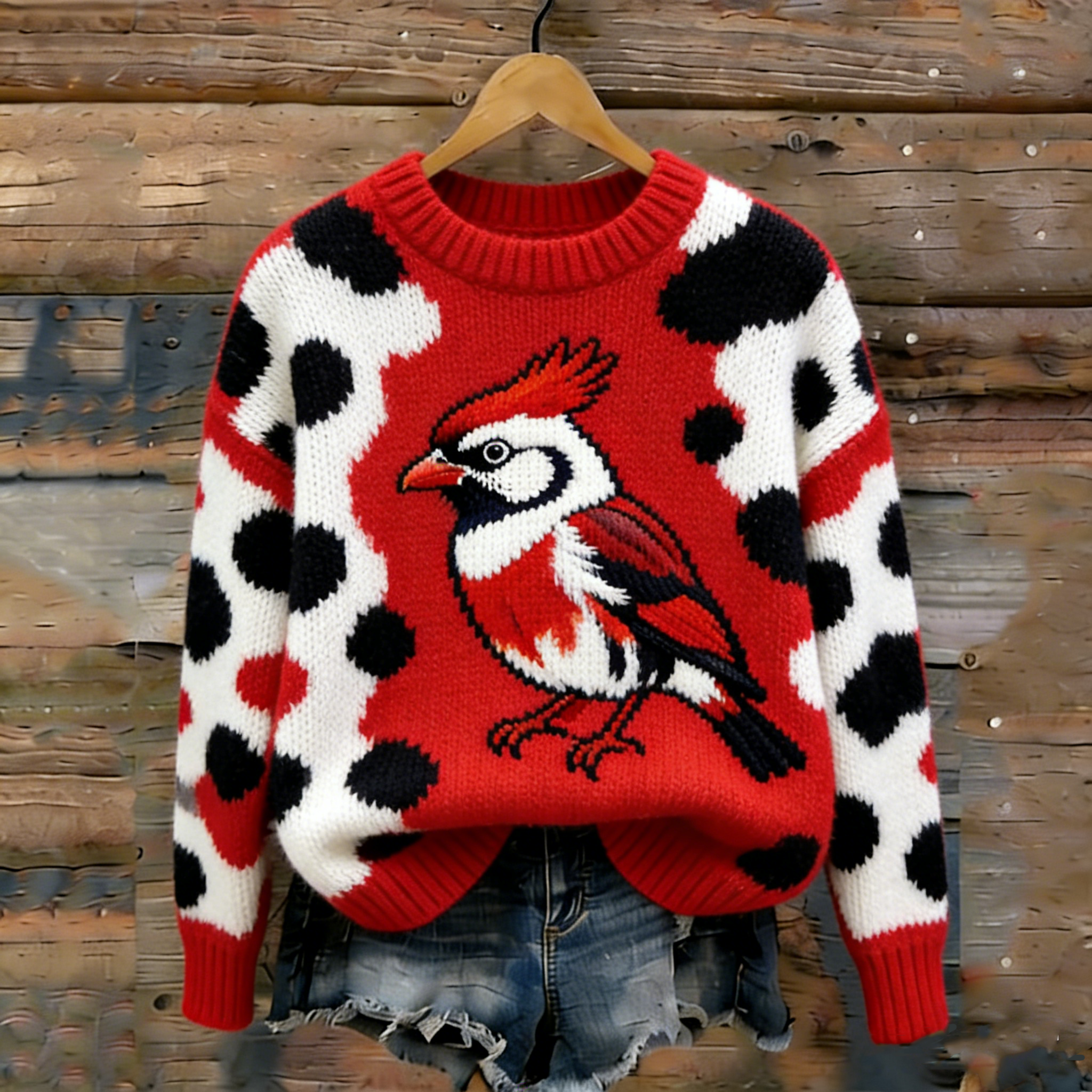 Bird Art Comfortable Leisure Round Neck Sweater