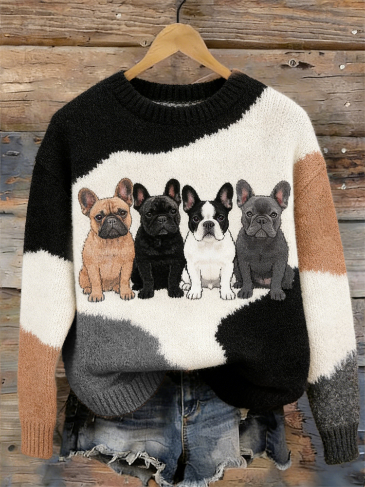 Bulldogs Inspired Colorblock Cozy Knit Sweater