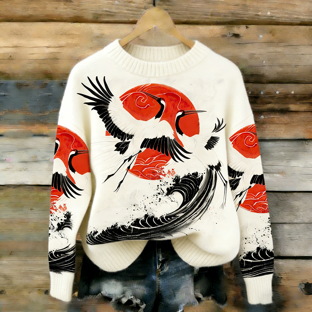 Sunshine Flying Crane Crew Neck Sweater