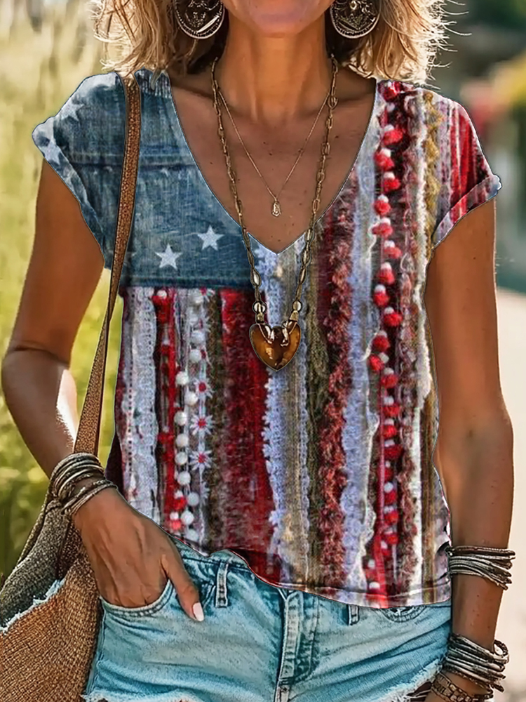 Women's Independence Day Flag Print T-shirt