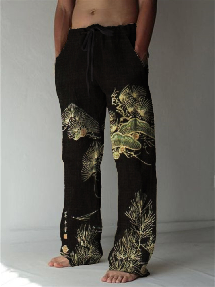 Pine Trees Japanese Art Linen Blend Casual Pants