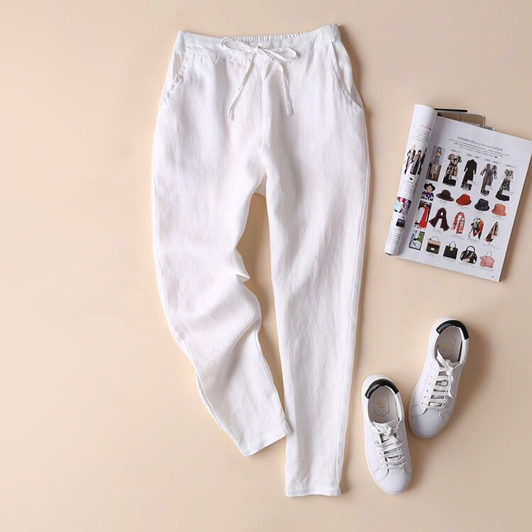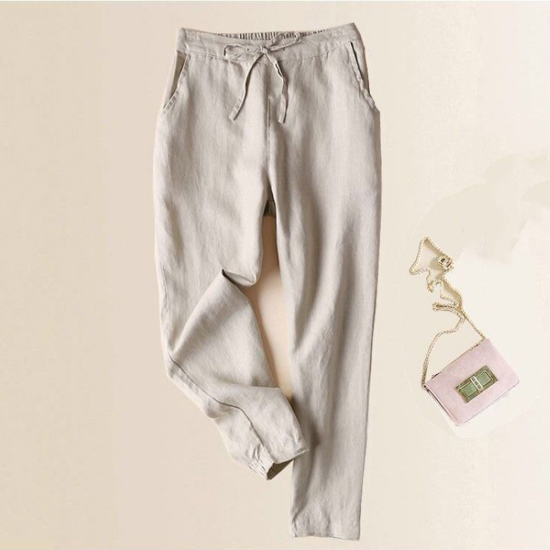 Vintage Solid Cotton Linen Pocket Casual Pants