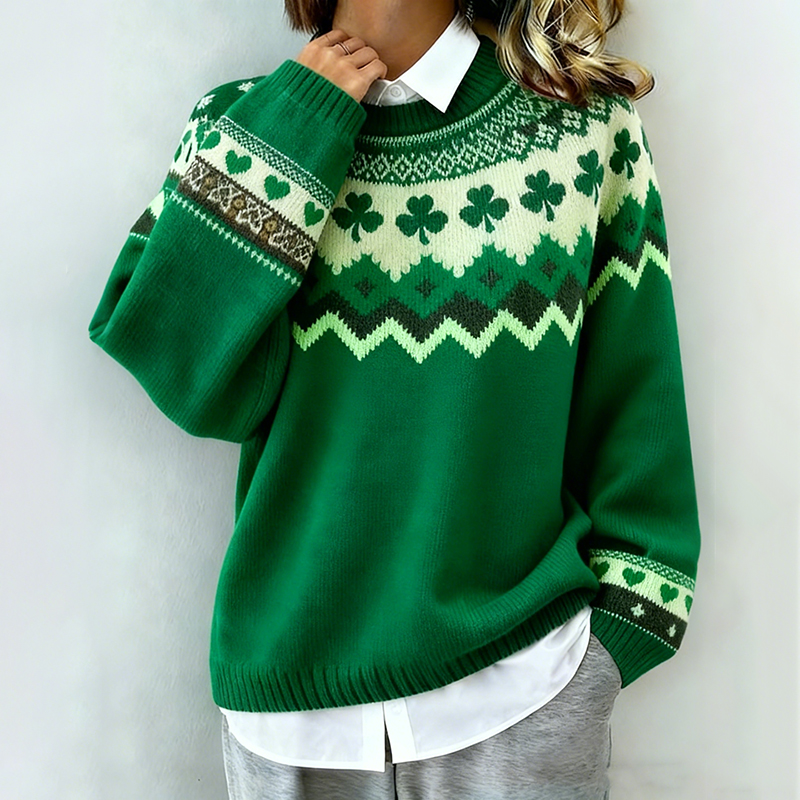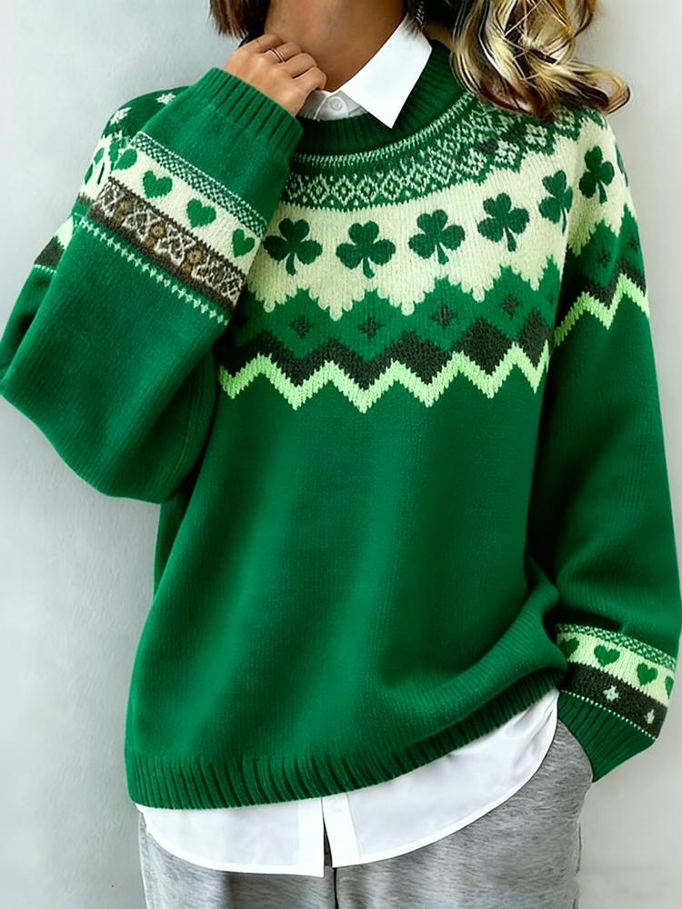 Women's St. Patrick's Day Shamrock And Heart Print Sweater