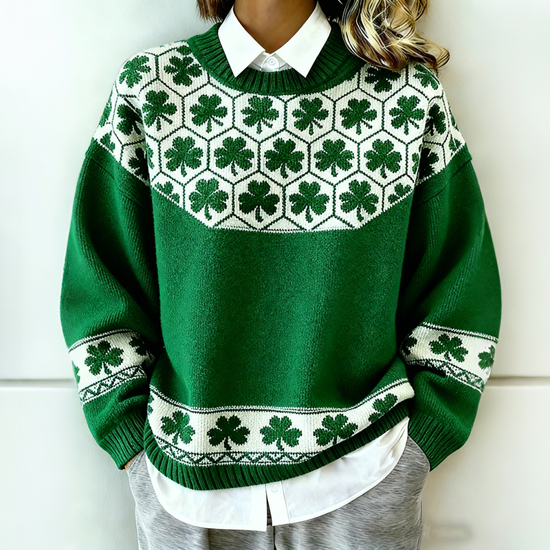 Women's St. Patrick's Day Shamrock Print Sweater