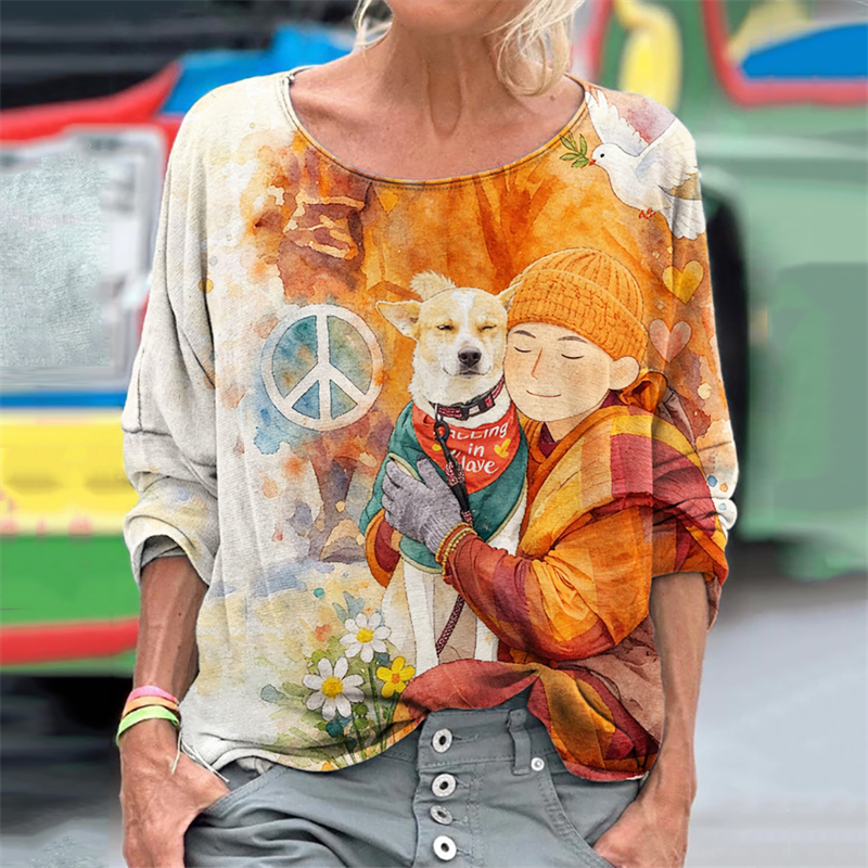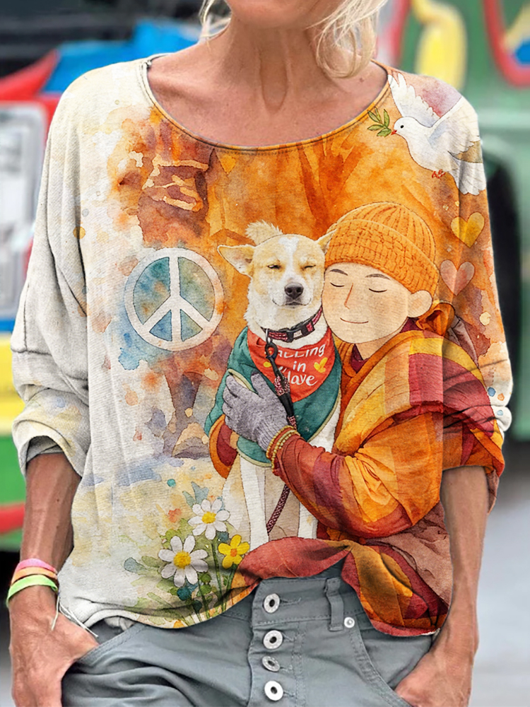 • Walk For Peace Aloka Dog Print T-shirt