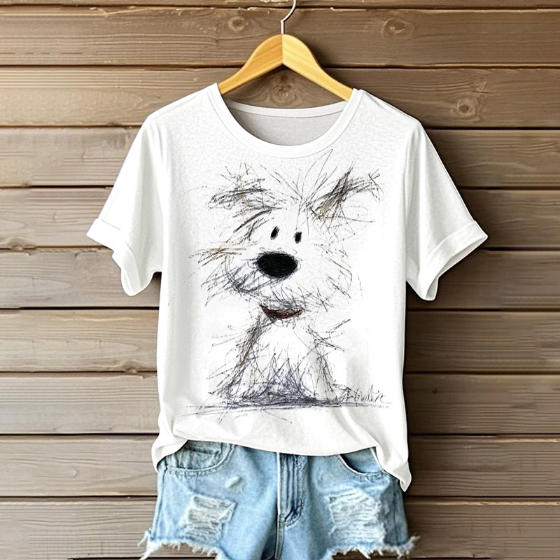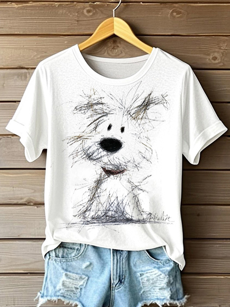 • Sketchy Puppy Line Art Short Sleeve T-shirt