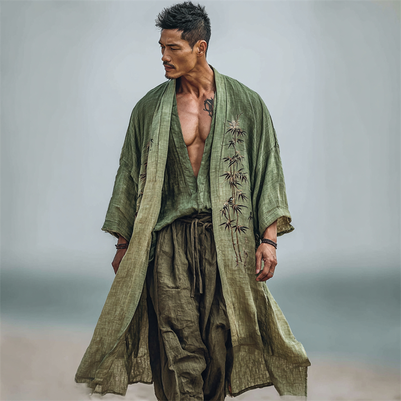Men's Japanese Bamboo Gradient Flowy Linen Long Kimono