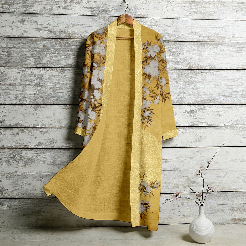 Bright Sunshine Japanese Floral Art Flowy Linen Long Kimono