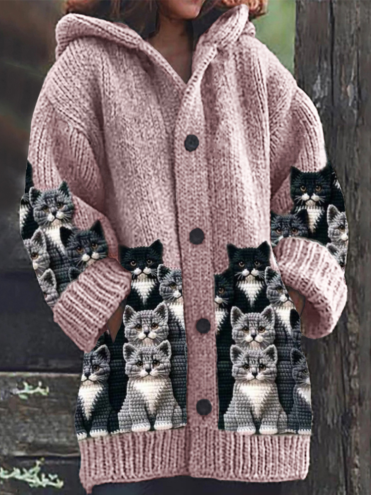 Crowded Cats Crochet Art Cozy Knit Hooded Cardigan