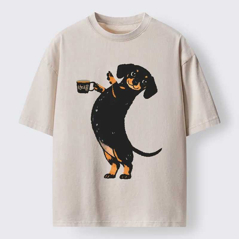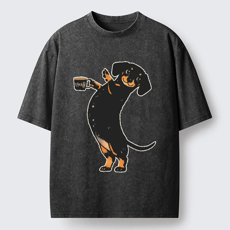 Elegant Coffee Dog Washed T-shirt