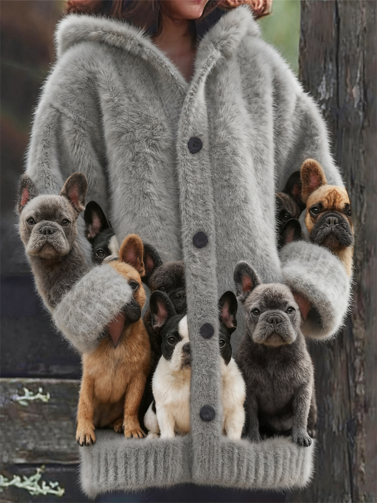 French Bulldogs Inspired Cozy Knit Hooded Cardigan