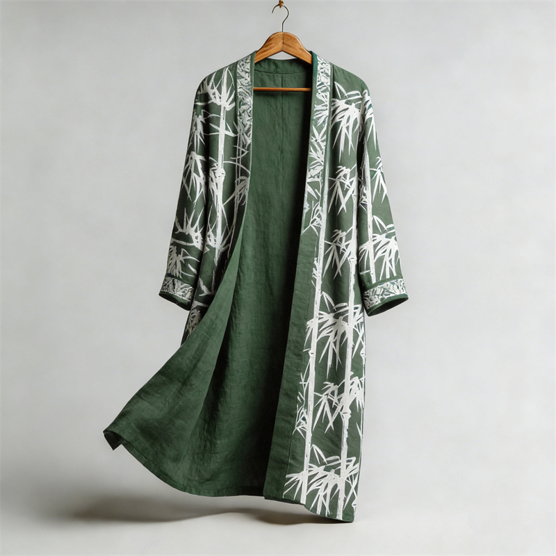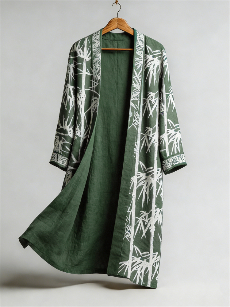 Japanese Bamboo Lino Art Flowy Linen Long Kimono