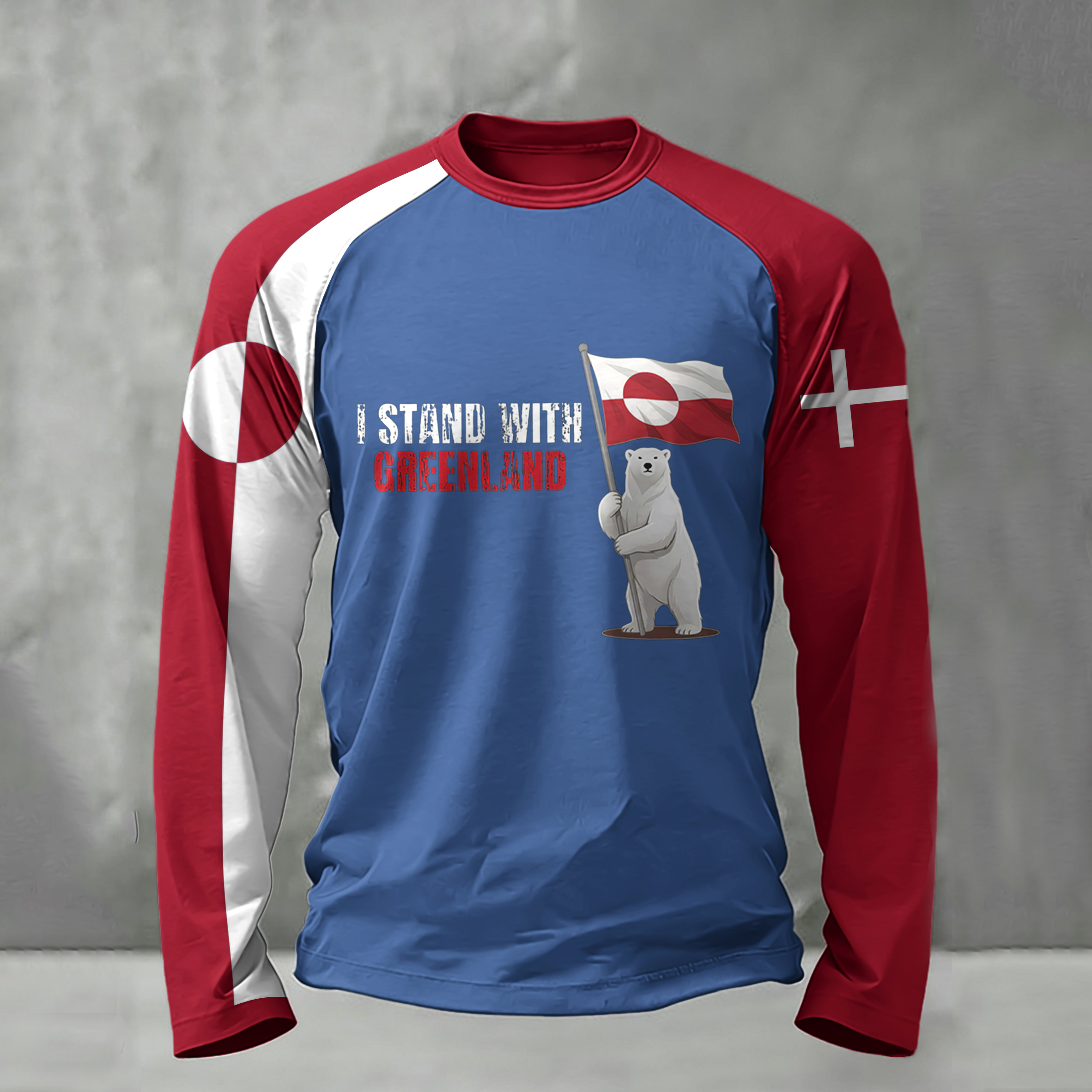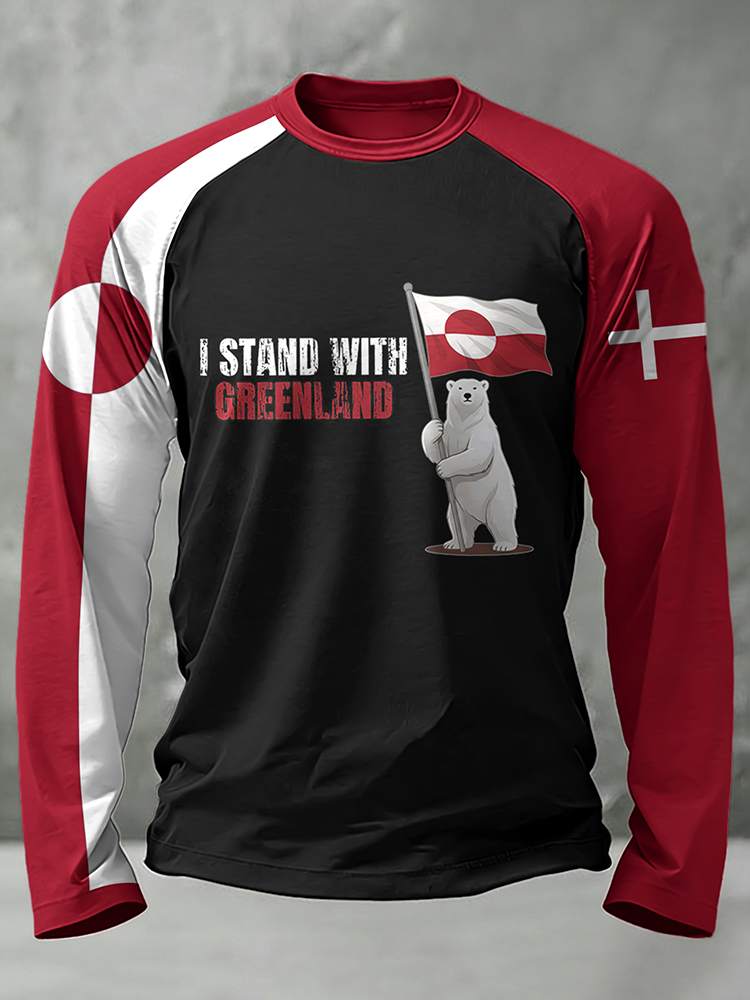 Men's Greenland Print Crew Neck Long Sleeve Casual T-shirt