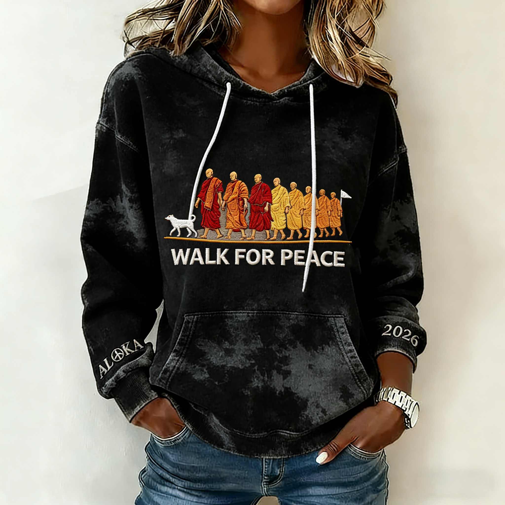Monks' Peace Walk Tie Dye Print Hoodie
