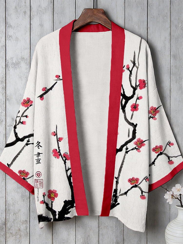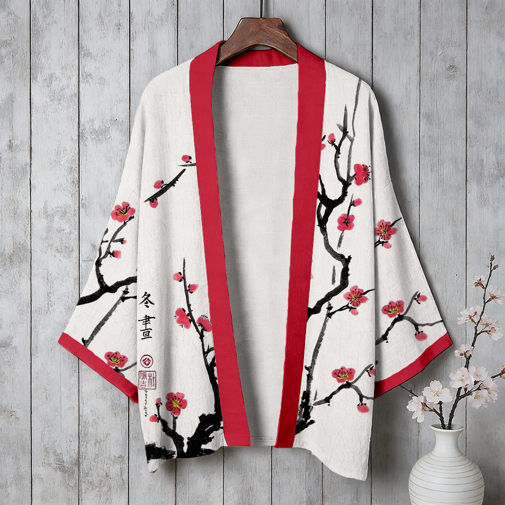 Vintage Japanese Plum Blossom Cozy Linen Kimono
