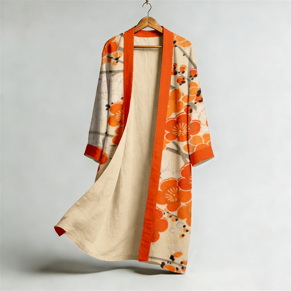 Vintage Japanese Plum Blossom Flowy Linen Long Kimono