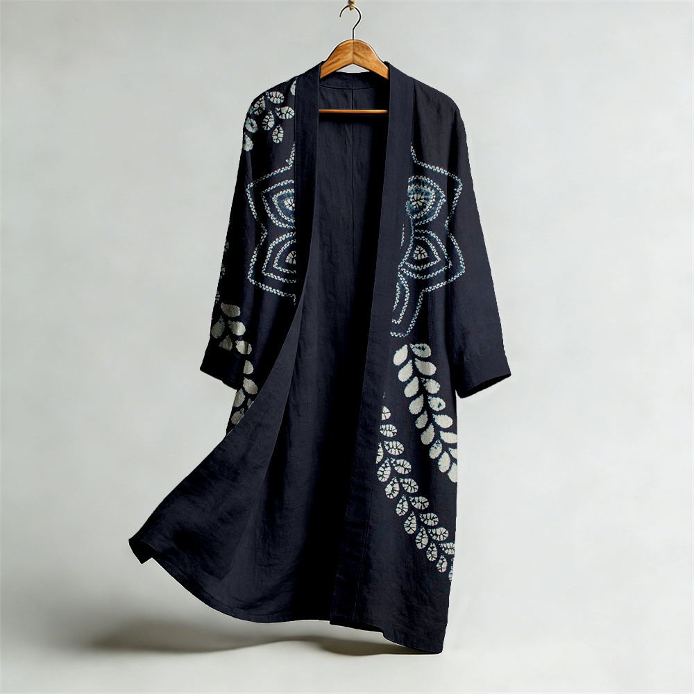 Vintage Japanese Tie Dye Art Flowy Linen Long Kimono