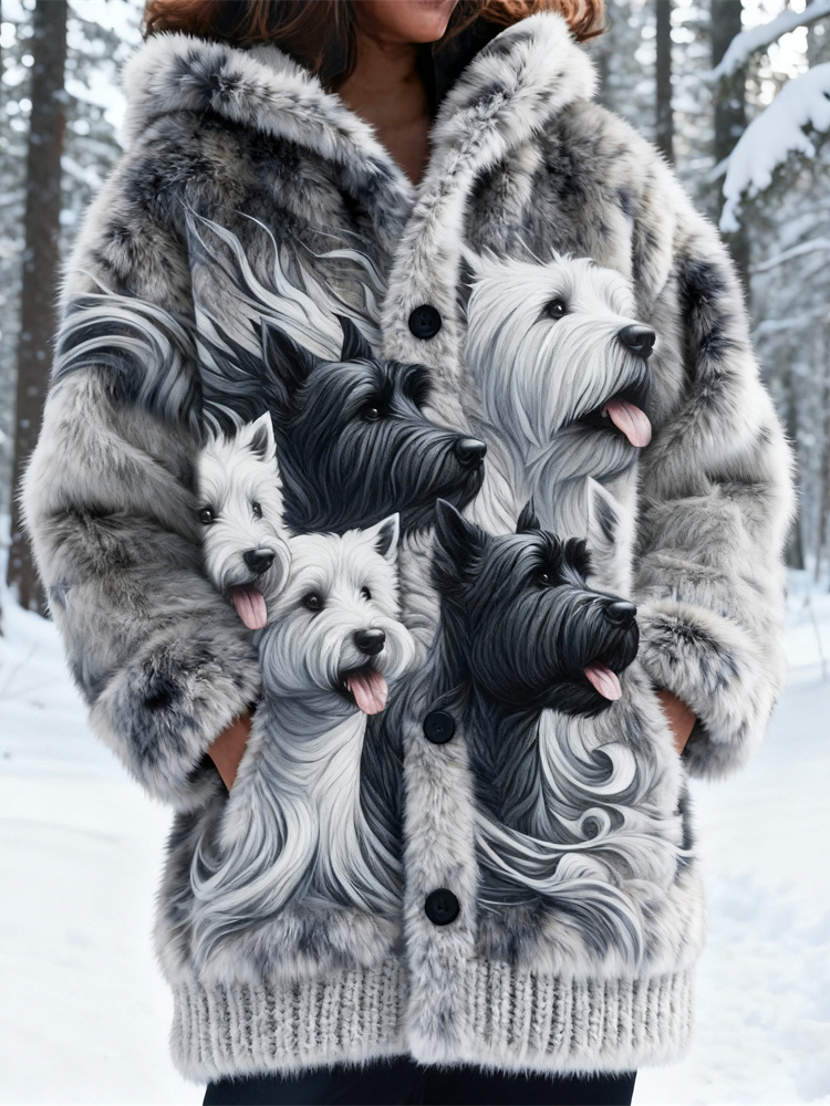 Winter Pet Dog Design Women's Plush Hooded Cardigan
